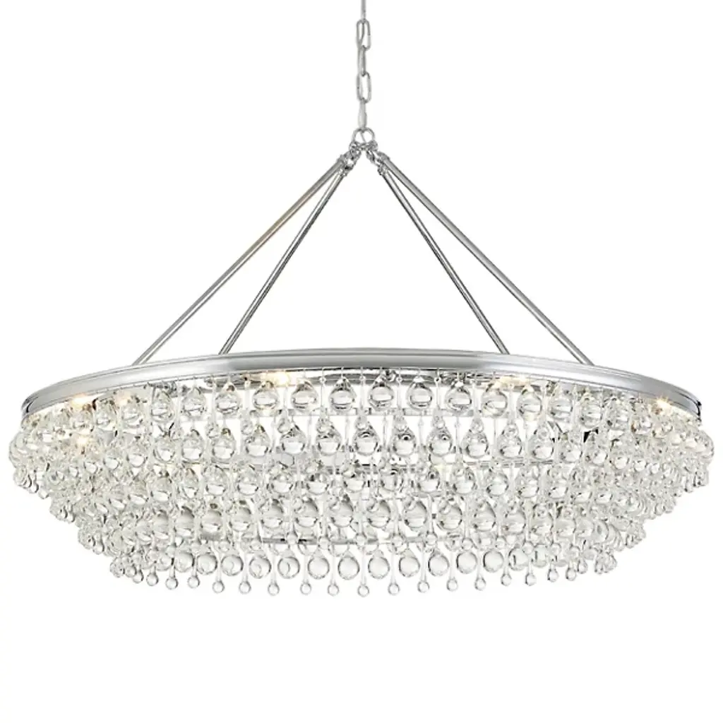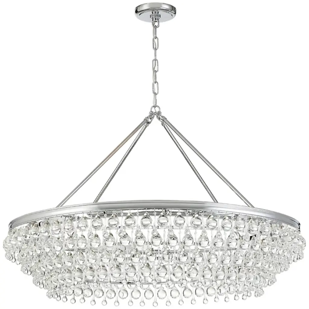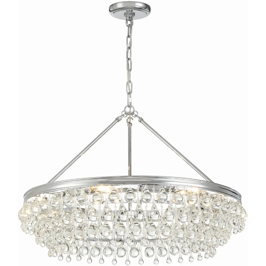 Illuminate your space with elegance and glamour courtesy of the Calypso Large Chandelier from Crystorama. Adorned with many smoothly shaped clear drops and balls, this contemporary ensemble makes a striking statement in any setting, whether it's a living room, dining room, bathroom, or entryway. With its refined design and dazzling aesthetic, the Calypso Chandelier adds a touch of sophistication and charm to your home décor, creating an ambiance of luxury and refinement.