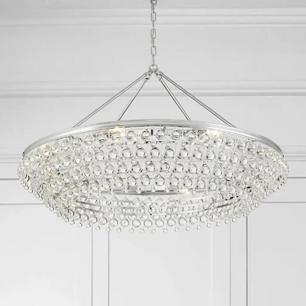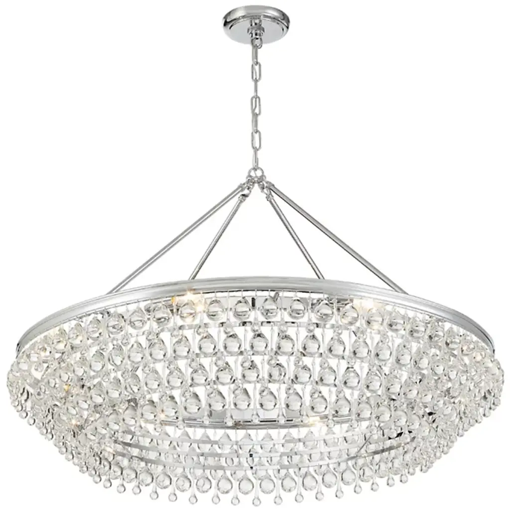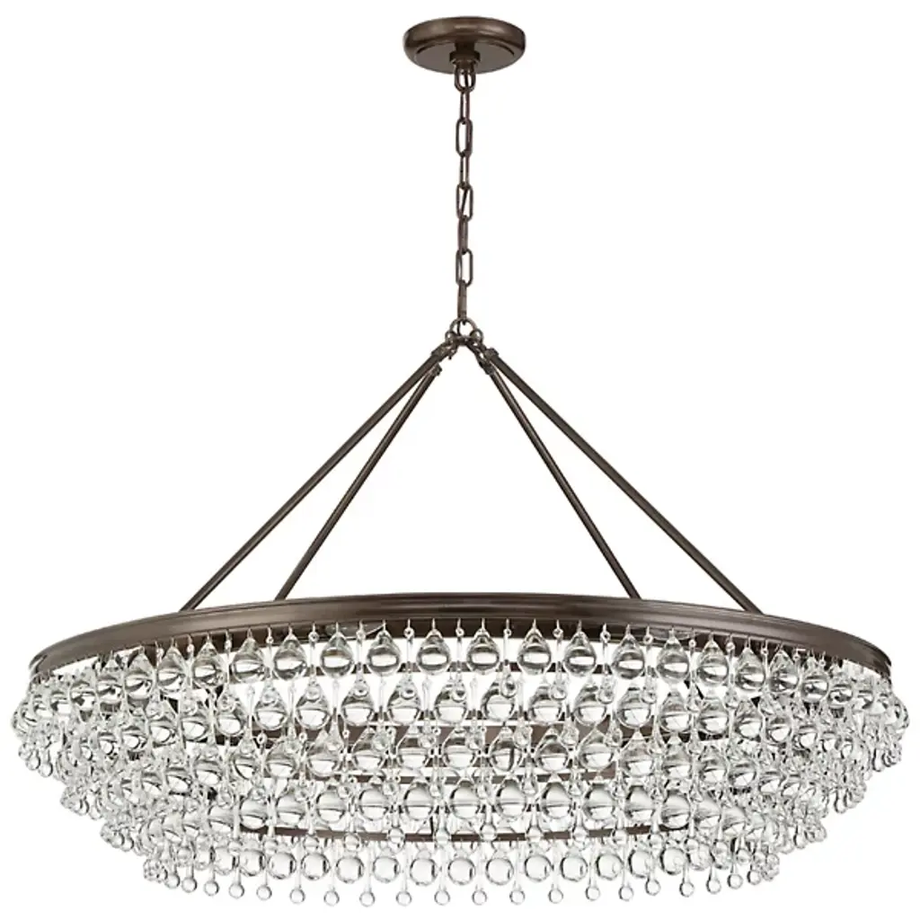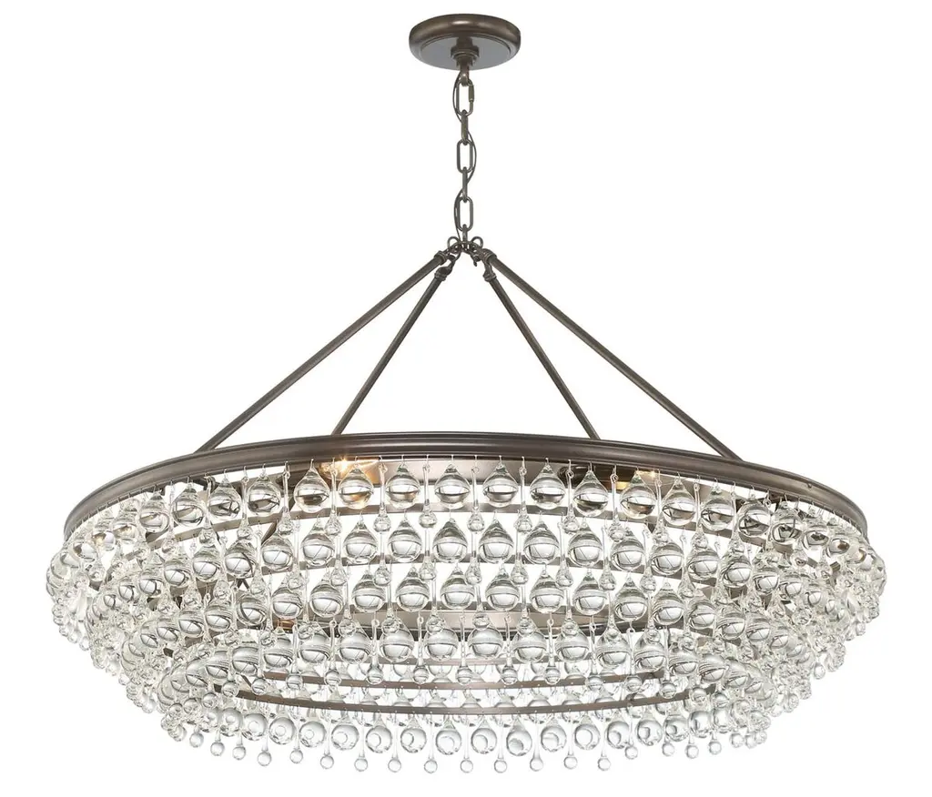 Illuminate your space with elegance and glamour courtesy of the Calypso Large Chandelier from Crystorama. Adorned with many smoothly shaped clear drops and balls, this contemporary ensemble makes a striking statement in any setting, whether it's a living room, dining room, bathroom, or entryway. With its refined design and dazzling aesthetic, the Calypso Chandelier adds a touch of sophistication and charm to your home décor, creating an ambiance of luxury and refinement.