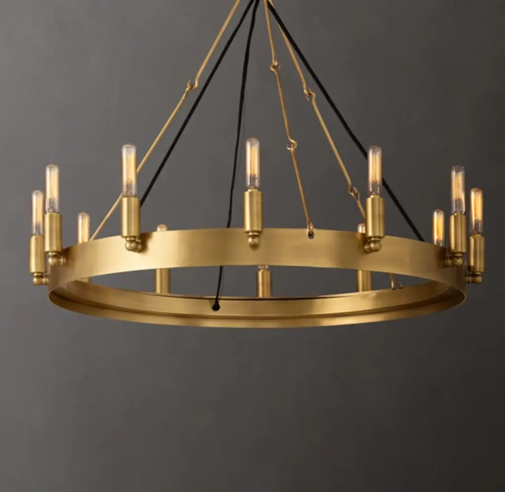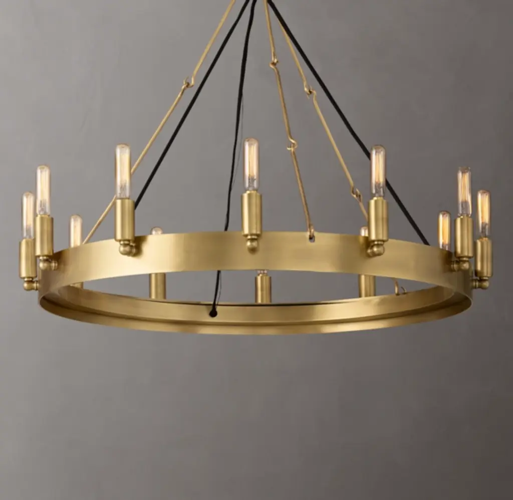 Rustic in style, simple in form and grandly sized, our hand-forged chandelier designed by industrial blacksmith Jon Sarriugarte makes an elegant statement. Drawing inspiration from early 20th century industrial fixtures, it's built of stout angle iron.