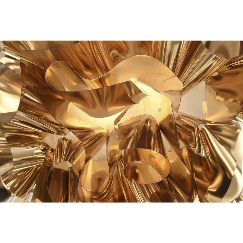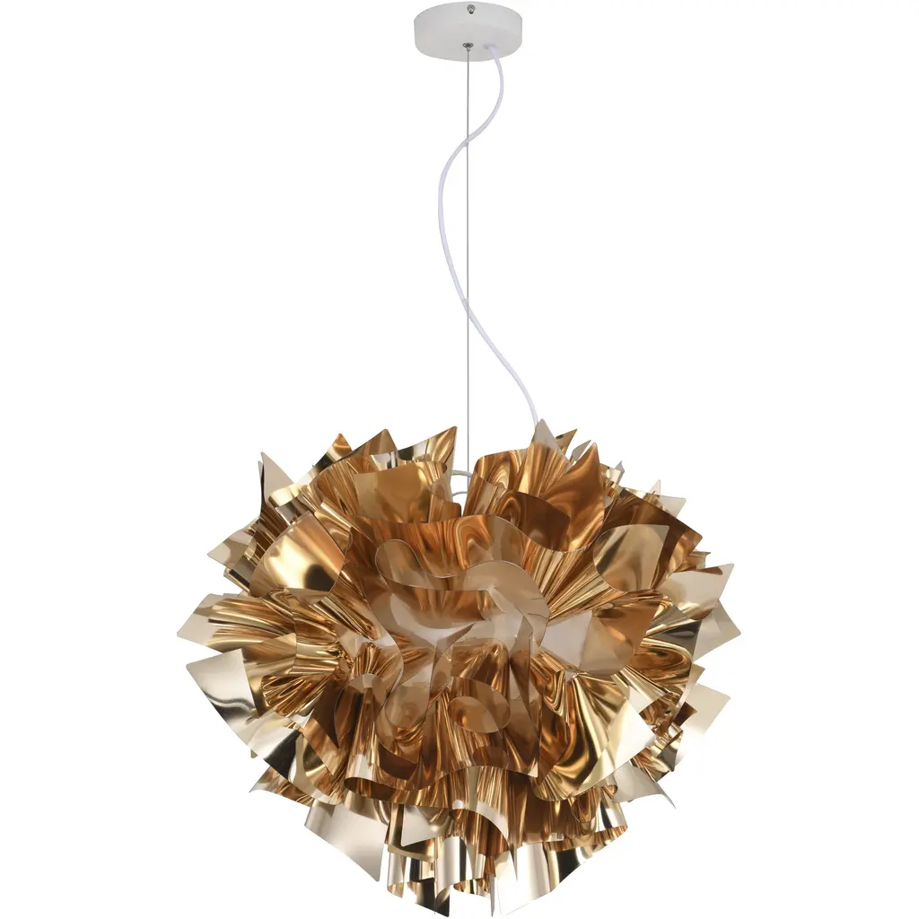 The shiny gold acrylic light is a classic and elegant chandelier. It features a shiny gold acrylic shade that provides a soft and warm glow, and an iron frame that adds a touch of industrial chic. The light is equipped with a single E26 socket (Bulbs Not Included), compatible with standard 60W incandescent bulbs. With a diameter of 23.6 inches and a height of 9.8 inches, this light is a great option for placing on a table, desk, or shelf. Its simple and understated design makes it a versatile choice for any room such as bedroom, living room, entryway, dinning room, or hallway, and its iron frame adds a touch of ruggedness to its overall aesthetic.