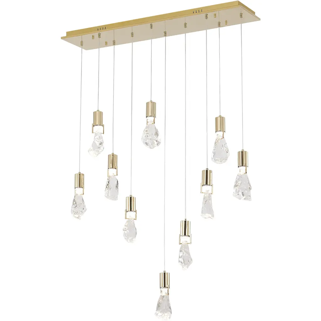 This transitional chandelier is a stunning and luxurious lighting fixture that adds a touch of opulence to any room. Measuring 40 inches in width, 10 inches in depth, and 79 inches in height, this chandelier is designed to make a statement. The chrome metal frame provides a sophisticated and elegant backdrop for the clear crystal stones, which add a touch of glamour and sophistication. With 10xGU10 sockets and 50W bulbs (Bulbs Not Included), this fixture produces a bright and energizing light that is perfect for task lighting or ambient illumination. This pendant light is perfect for installing in a grand foyer, staircase, dinning room, or living room, and is sure to be a showstopper in any setting.