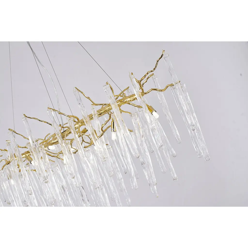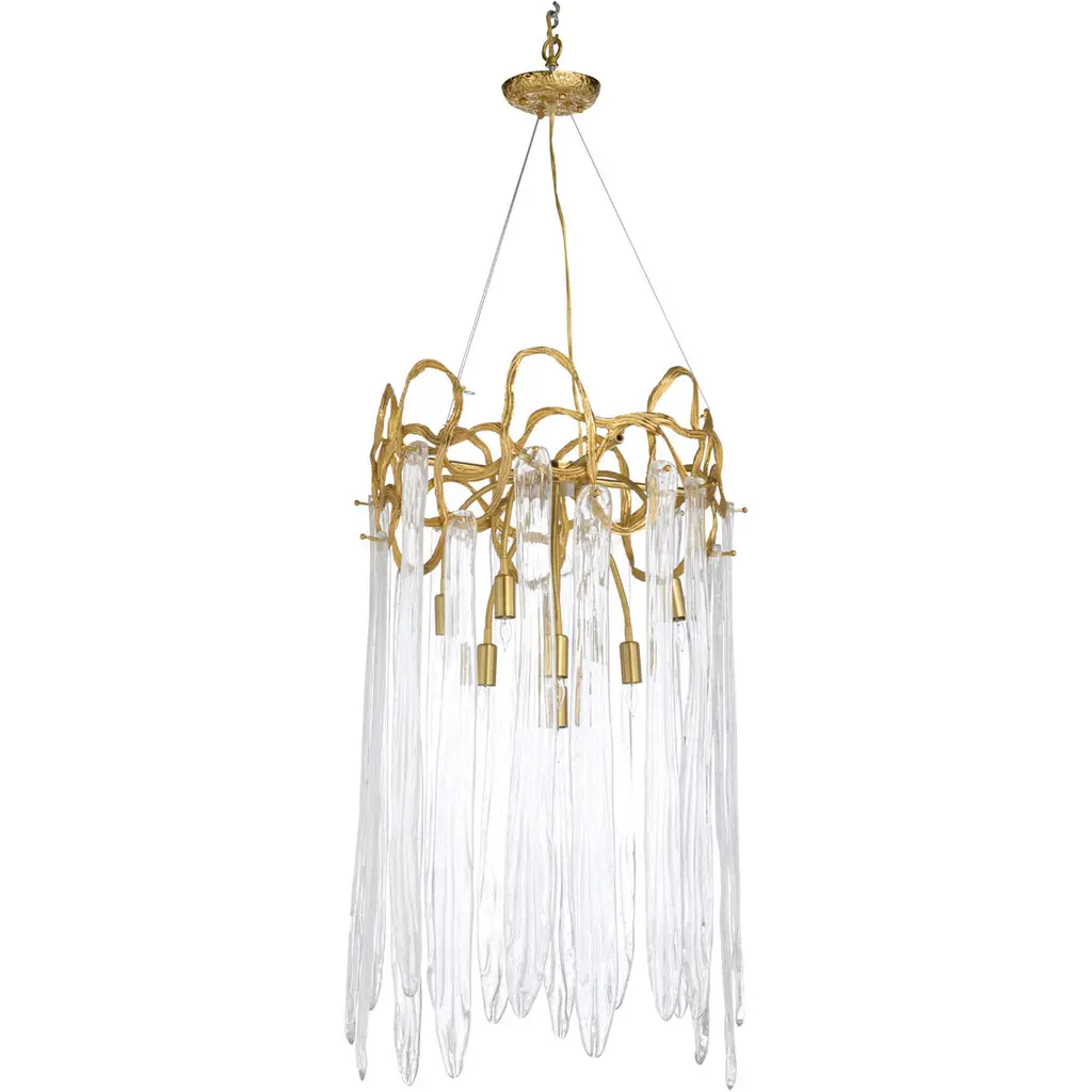 Refresh your home décor with this contemporary chandelier. This chandelier is dazzling and unique with clear glass hanging drops glimmer on a solid brass aluminum frame. When you hang this modern chandelier in your living room, dinning area, or foyer, you will easily be surprised by the magnificent light reflected by the glass accents. The adjustable cord links make this fixture suitable for most ceiling heights