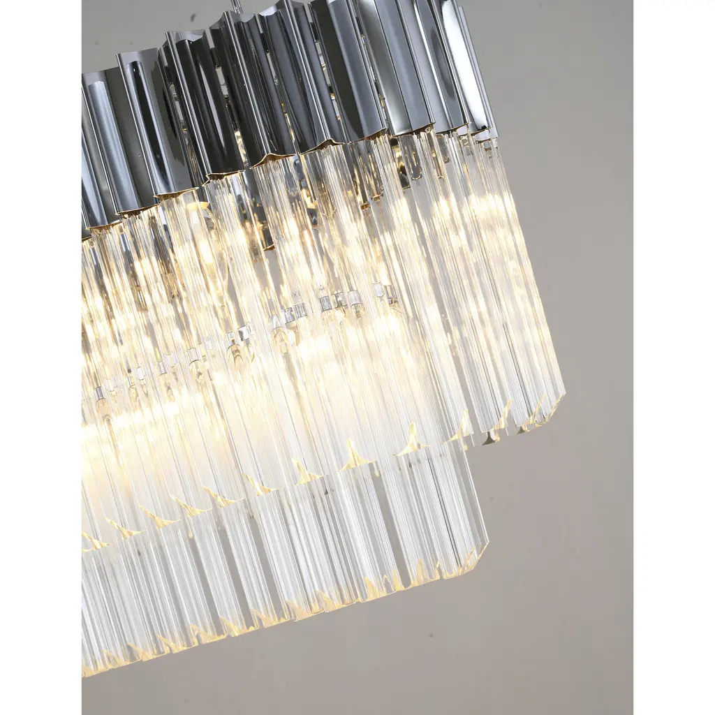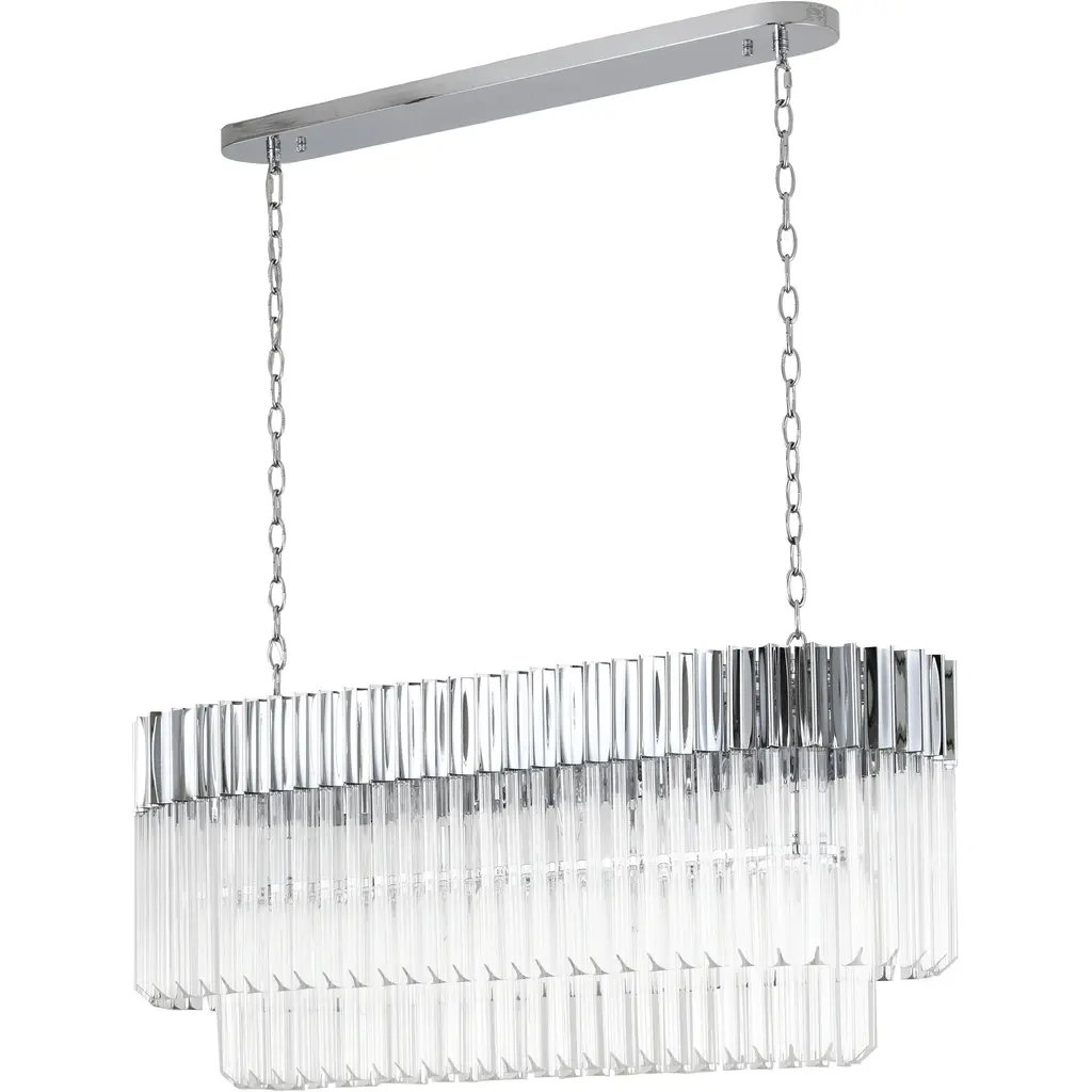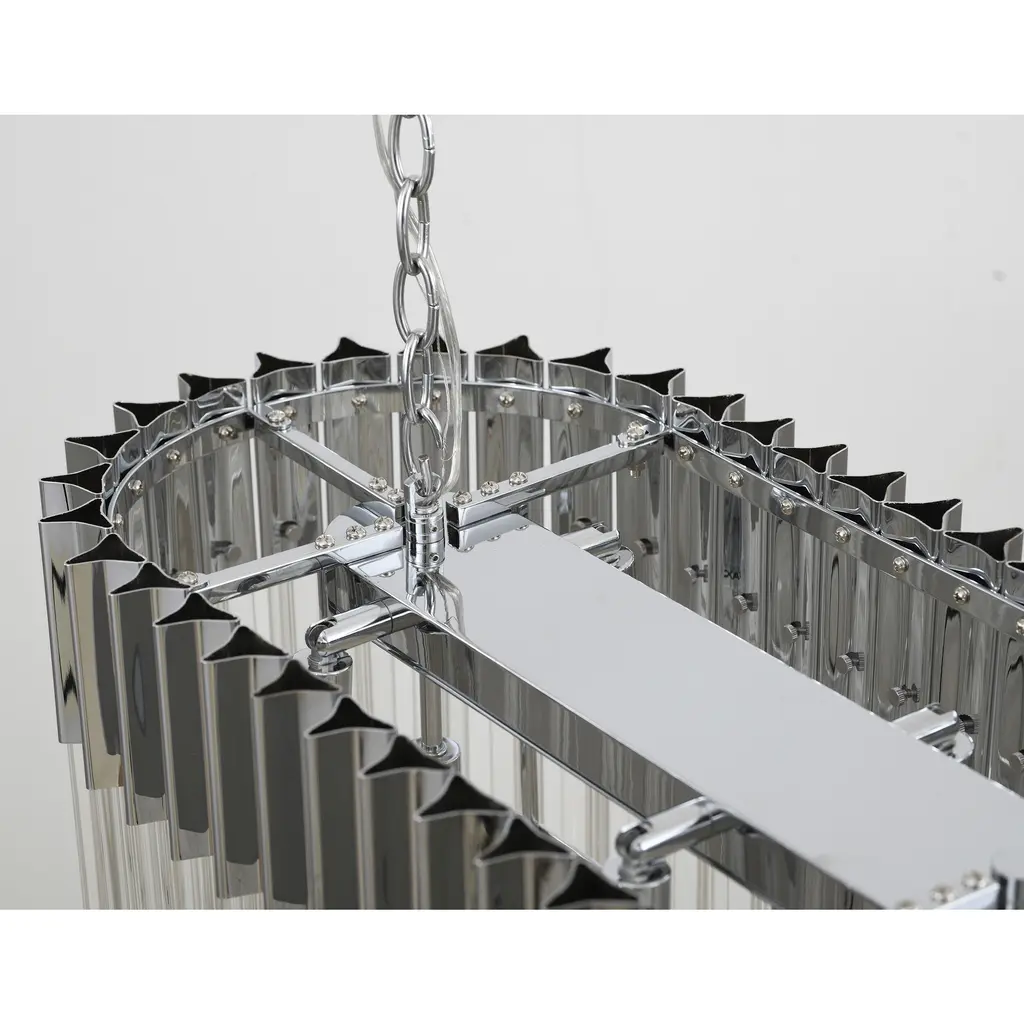 This chandelier is stunning with a chrome stainless steel frame decked with strands of faceted clear crystals, and the crystals further highlight the uniqueness of this chandelier. When you hang this modern crystals chandelier in a room, you will easily be surprised by the magnificent light reflected by the crystals. This fixture showcase opulence and elegance and is the perfect modern accent to any space. If you are also looking for a light source for your living room, foyer, or dinning room. The adjustable chain link makes this fixture suitable for most ceiling heights.