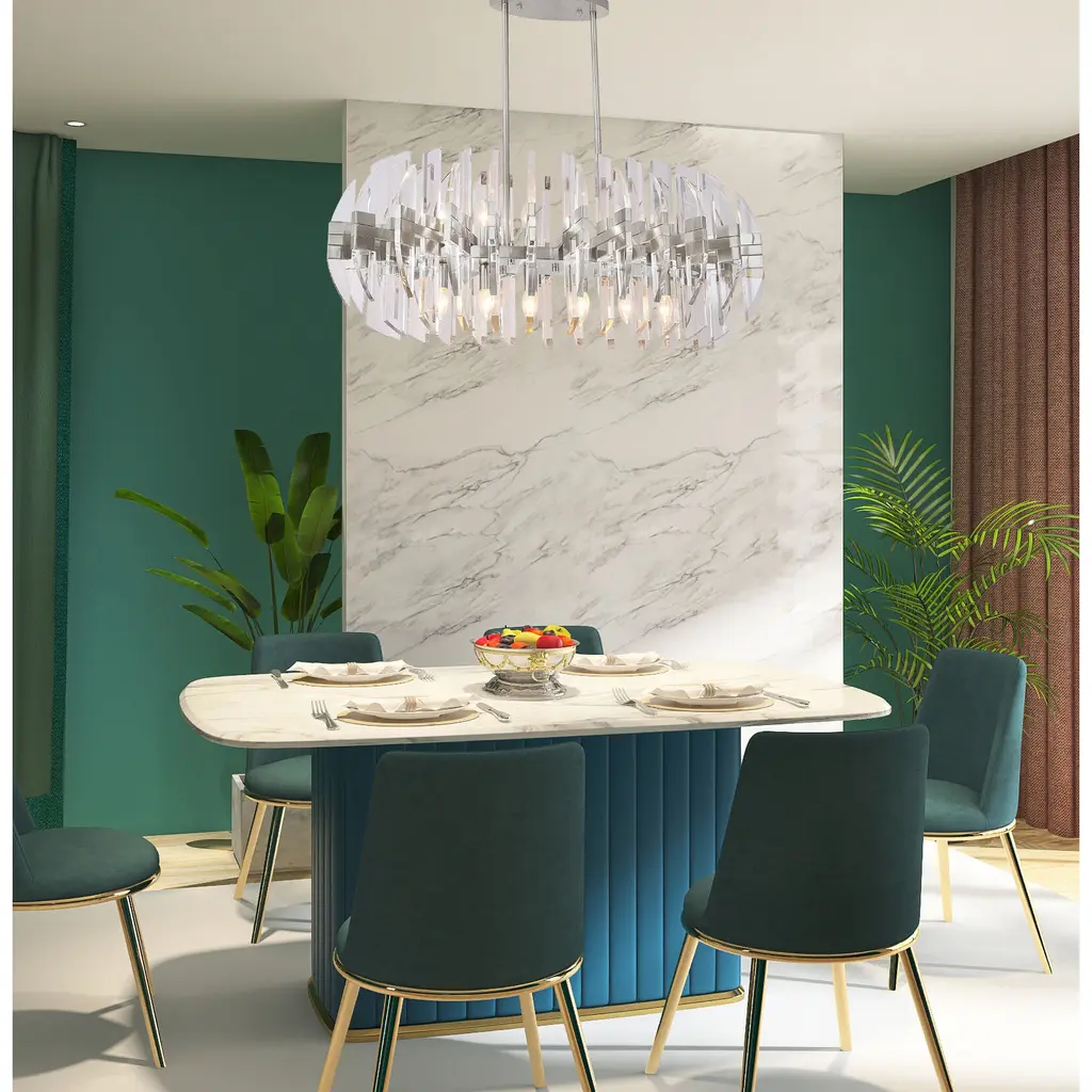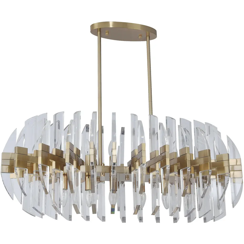This transitional chandelier is a versatile and stylish addition to any room, featuring a unique and adjustable design that allows you to direct the light exactly where you need it. The light's copper frame is paired with clear acrylic arms, providing a wide range of motion and flexibility. The light is designed to accommodate 12xE12 bulbs (Bulbs Not Included), each with a maximum wattage of 60W, allowing you to customize the light output to your preferences. Measuring 39 inches in width, 17.7 inches in depth, and 15.7 inches in height, this light is perfect for installing in a living room, dinning room, or entryway