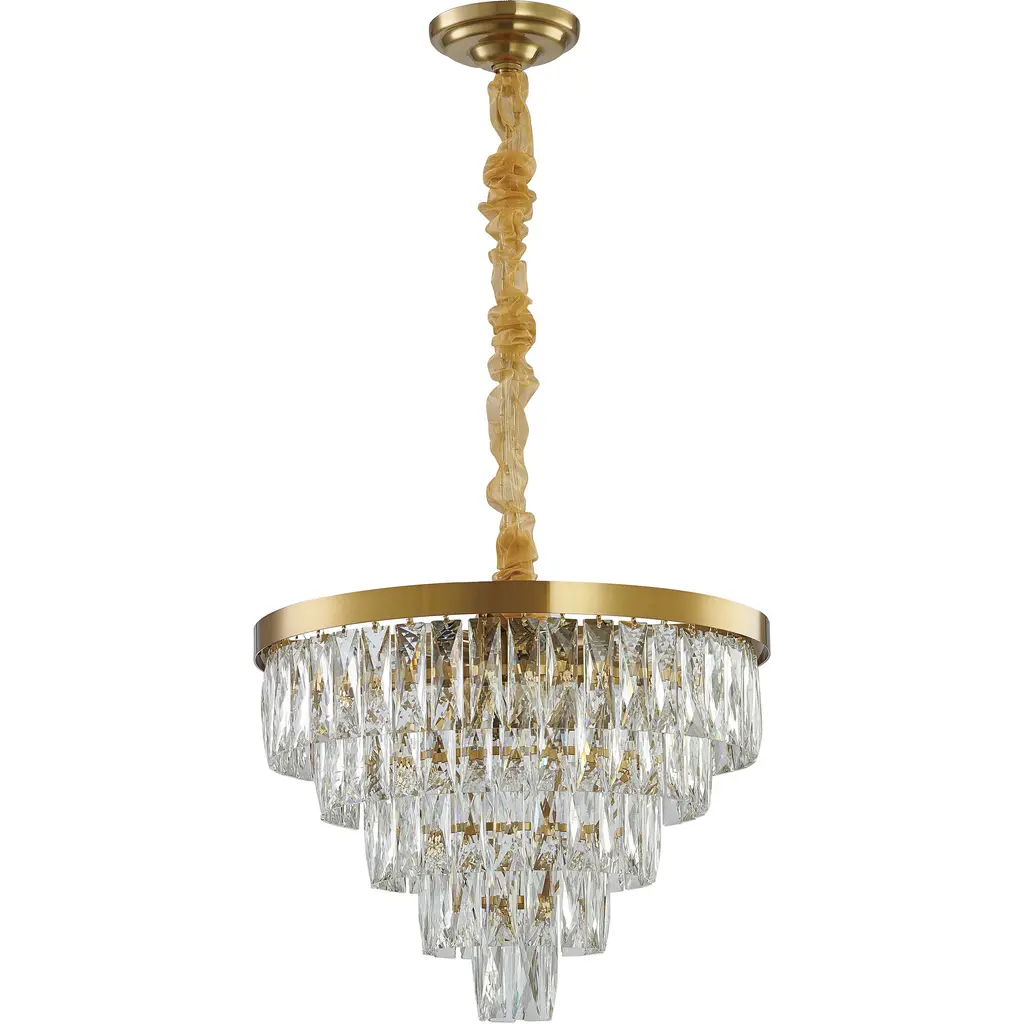 This contemporary chandelier is stunning with a gold iron frame decked with strands of faceted clear crystals, and the crystals further highlight the uniqueness of this chandelier. When you hang this modern crystals chandelier in a room, you will easily be surprised by the magnificent light reflected by the crystals. This fixture showcase opulence and elegance and is the perfect modern accent to any space. If you are also looking for a light source for your bedroom, living room, foyer, staircase, or dinning room. The adjustable chain link makes this fixture suitable for most ceiling heights.
