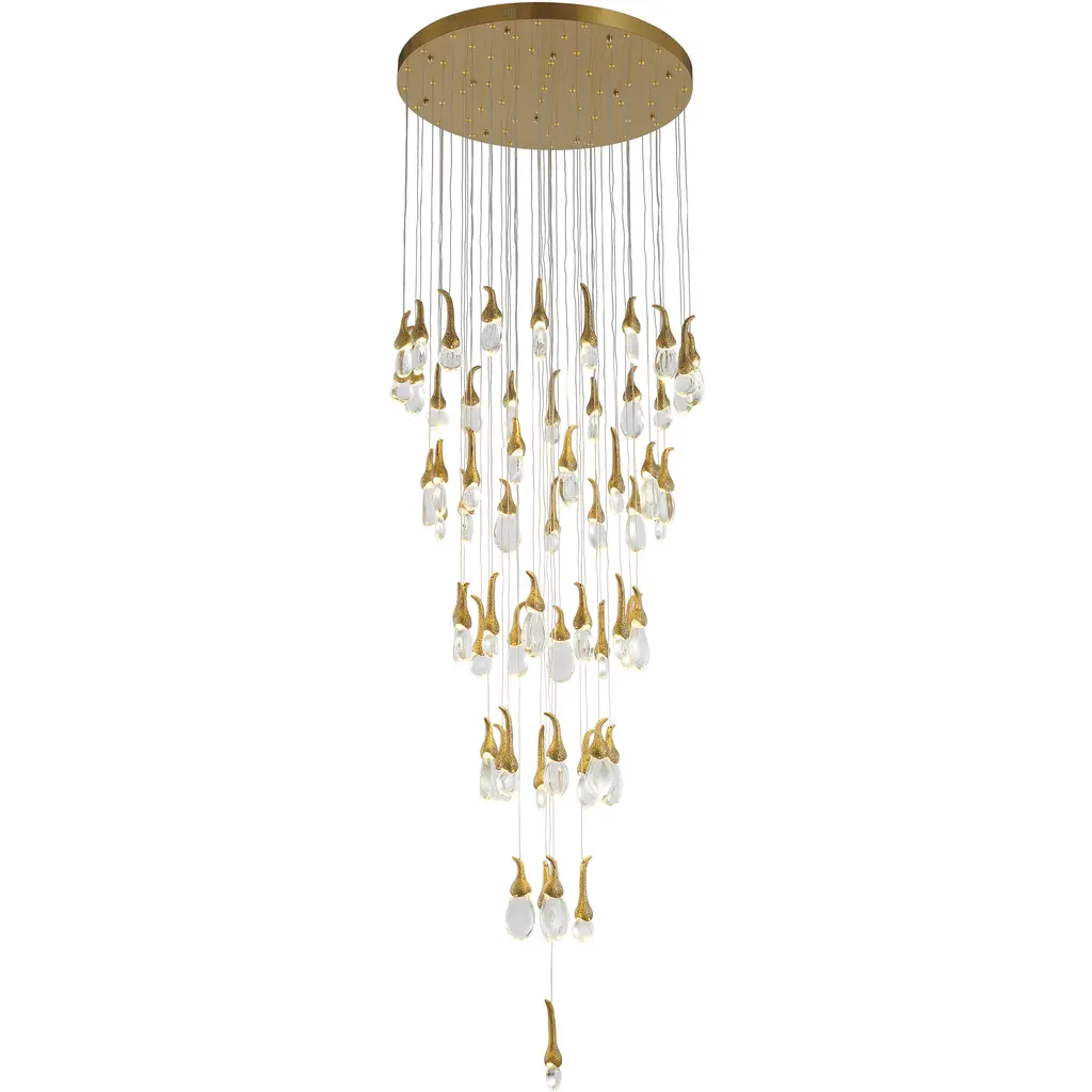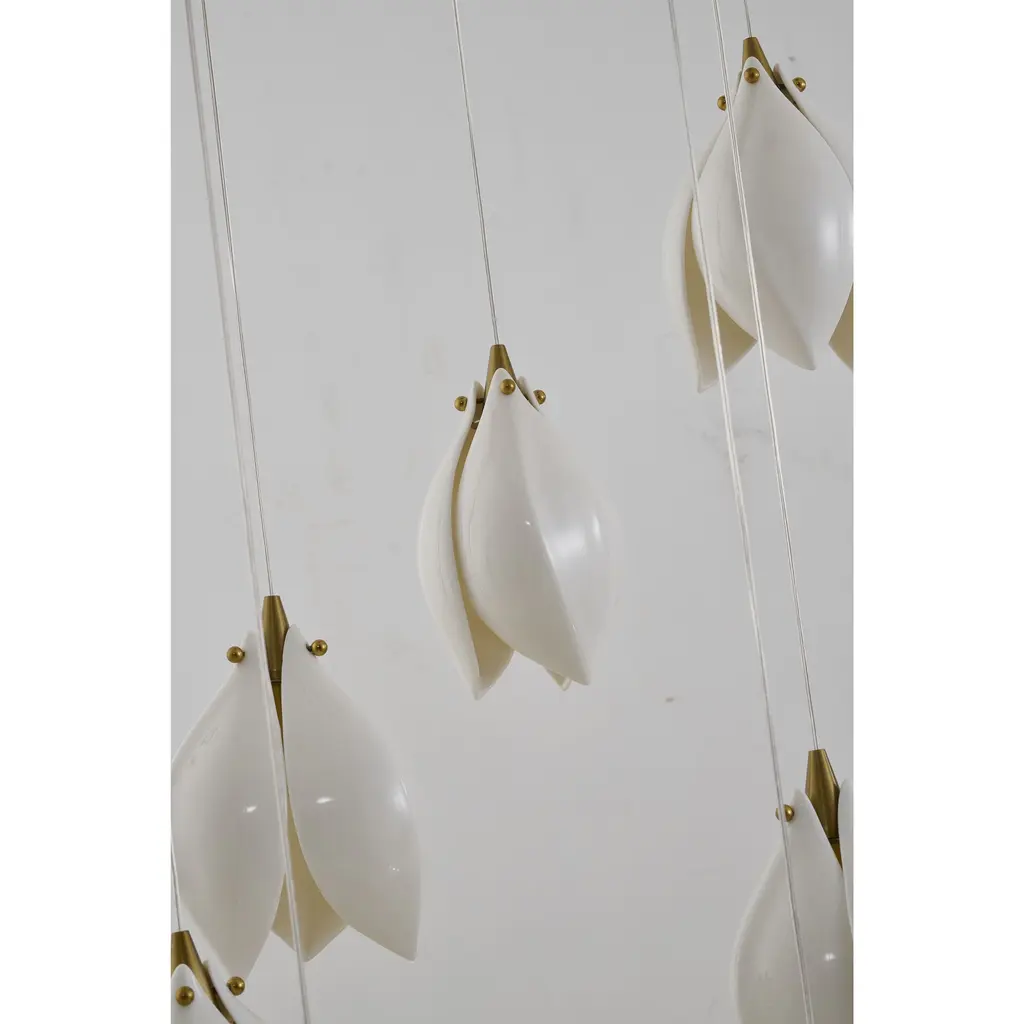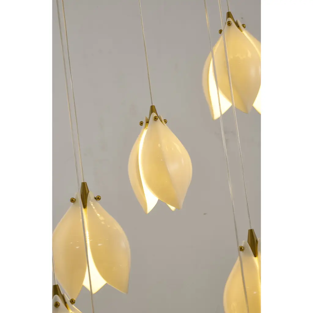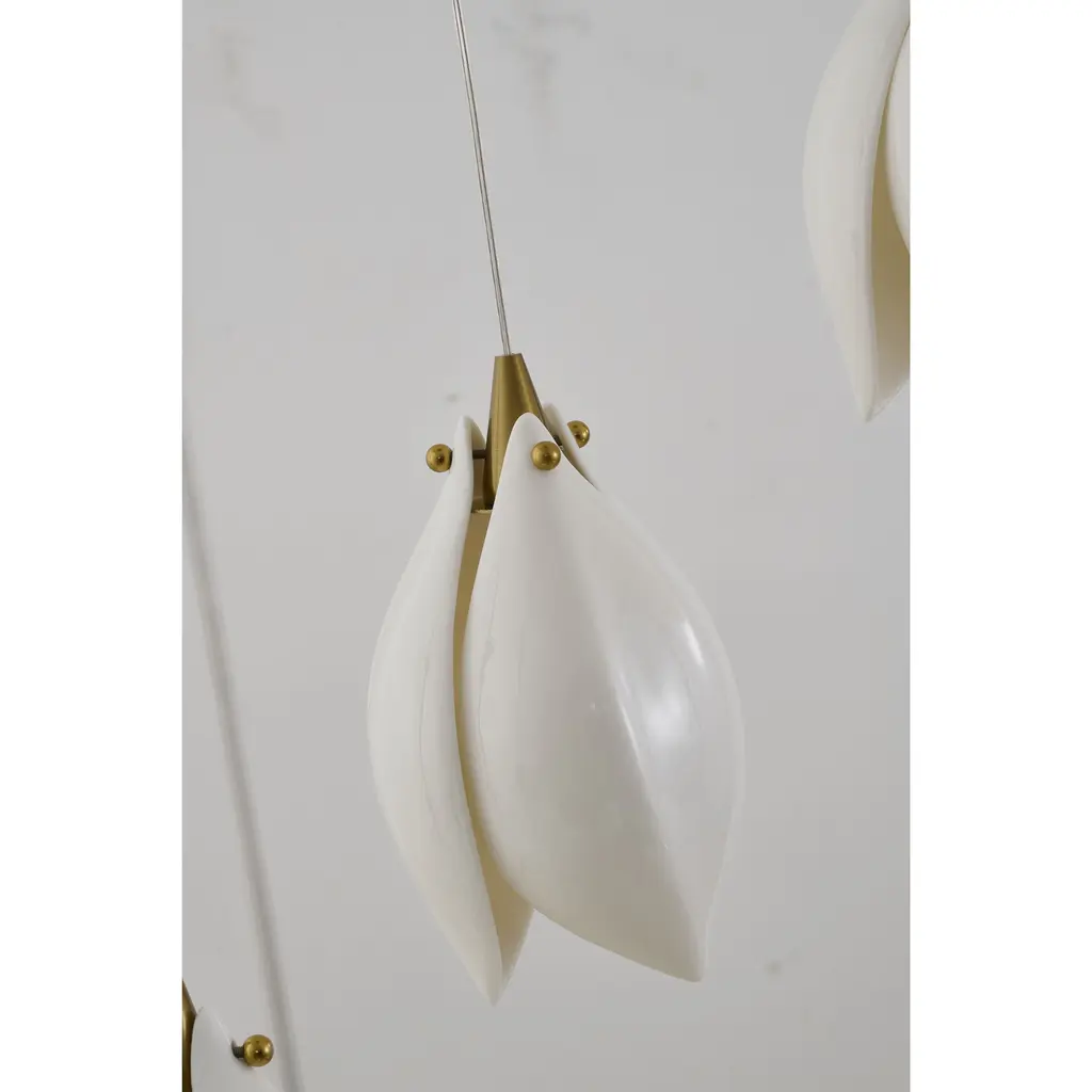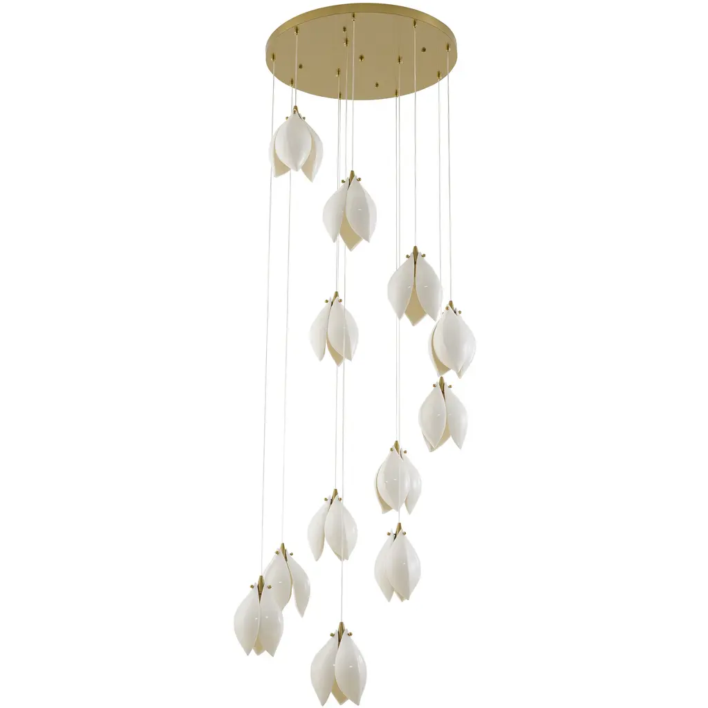 This transitional chandelier is a stunning and elegant lighting fixture that adds a touch of sophistication and refinement to any room. The bronze metal frame provides a warm and inviting look, while the cream ceramic flowers add a touch of softness and subtlety. The lamp's dimensions of 24 inches in diameter and 144 inches high make it a great option for living room, dinning room, or staircase. The 12xG9 base is compatible with standard light bulbs (Bulbs Not Included), and the 40W rating means it can provide a bright and warm glow.