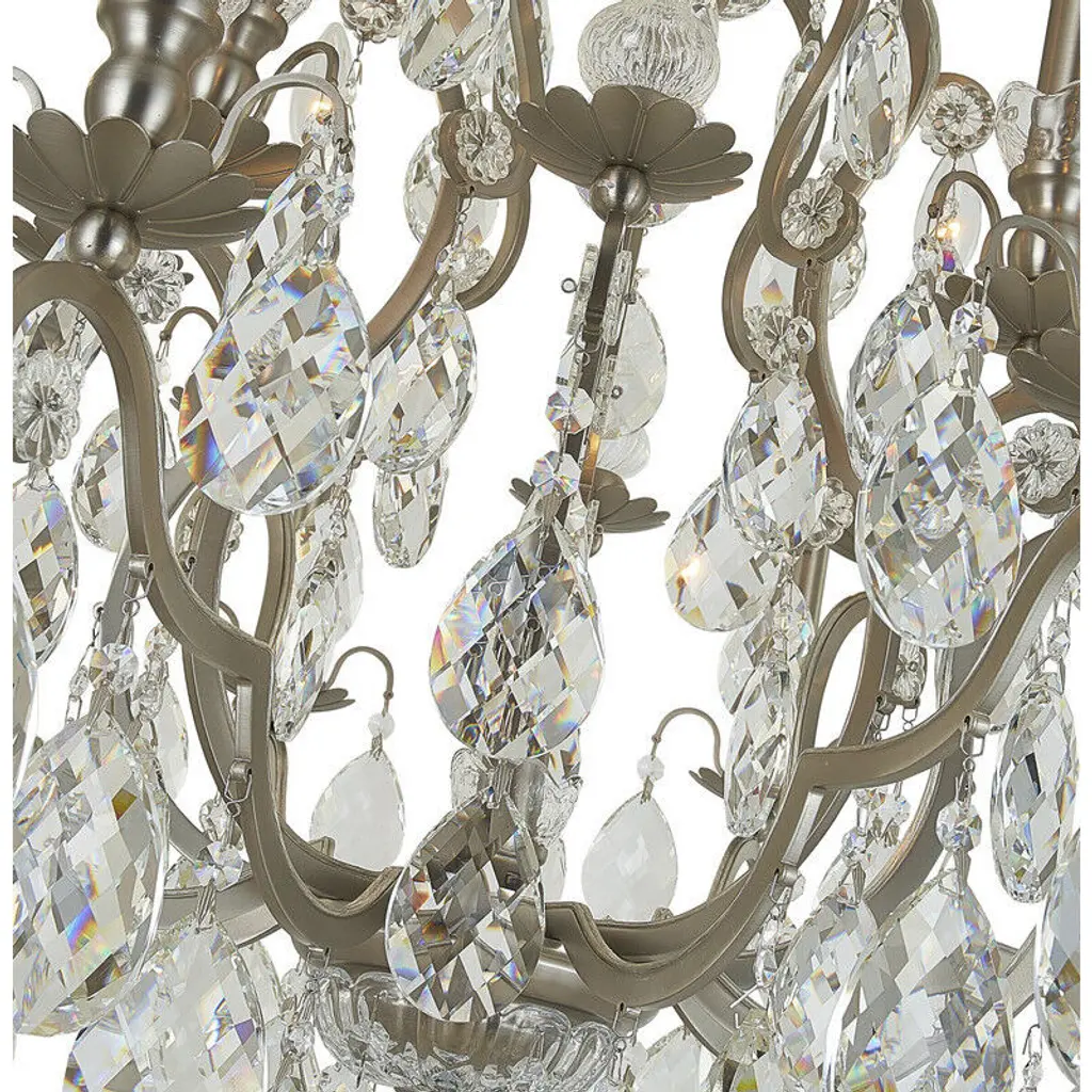 This contemporary chandelier is stunning with a pewter iron frame decked with strands of faceted clear crystals, and the crystals further highlight the uniqueness of this fixture. When you hang this modern chandelier in your home, you will easily be surprised by the magnificent light reflected by the crystal accents. If you are also looking for a light source for your living room, foyer, entryway, or dinning room, this chandelier can easily fit into your modern home decor.