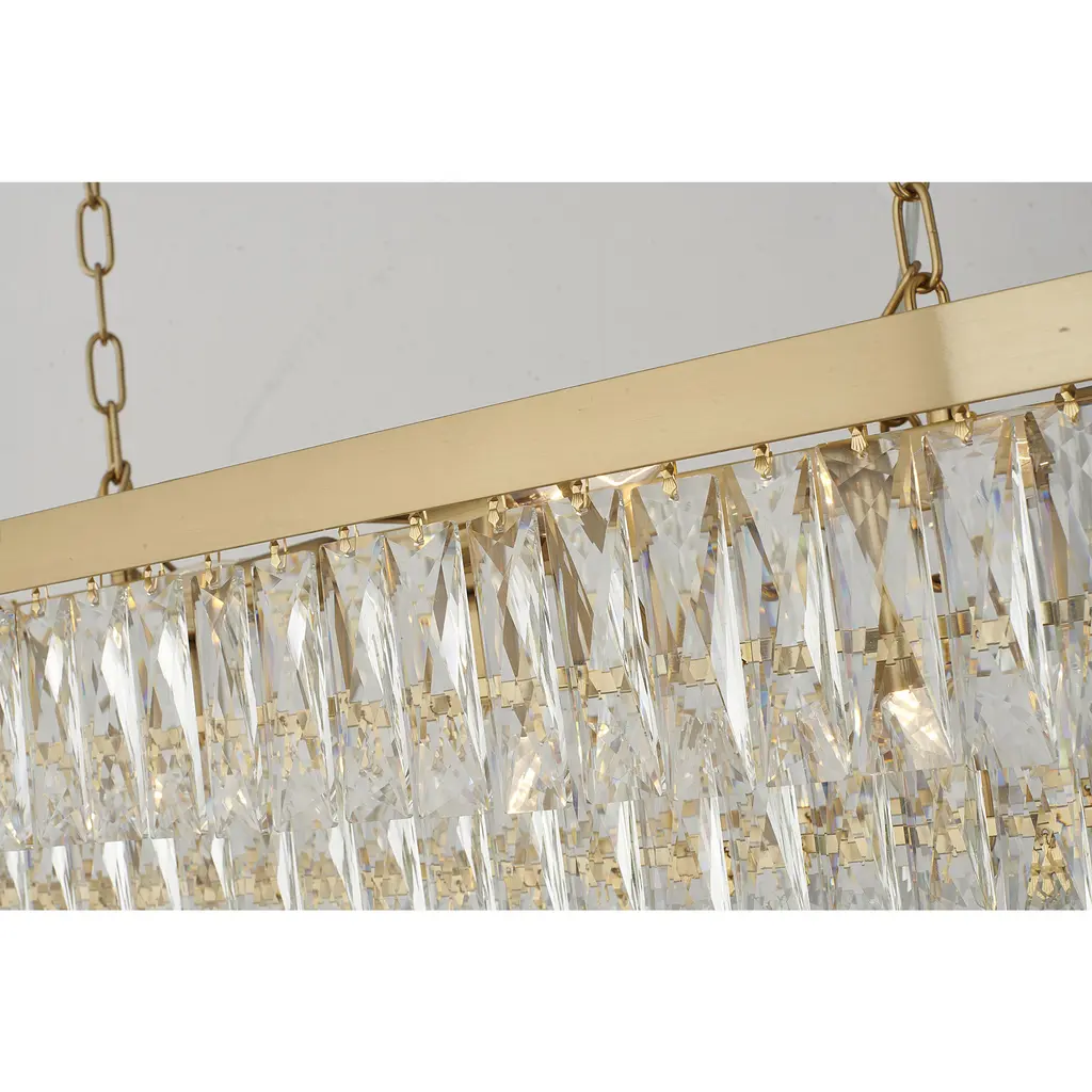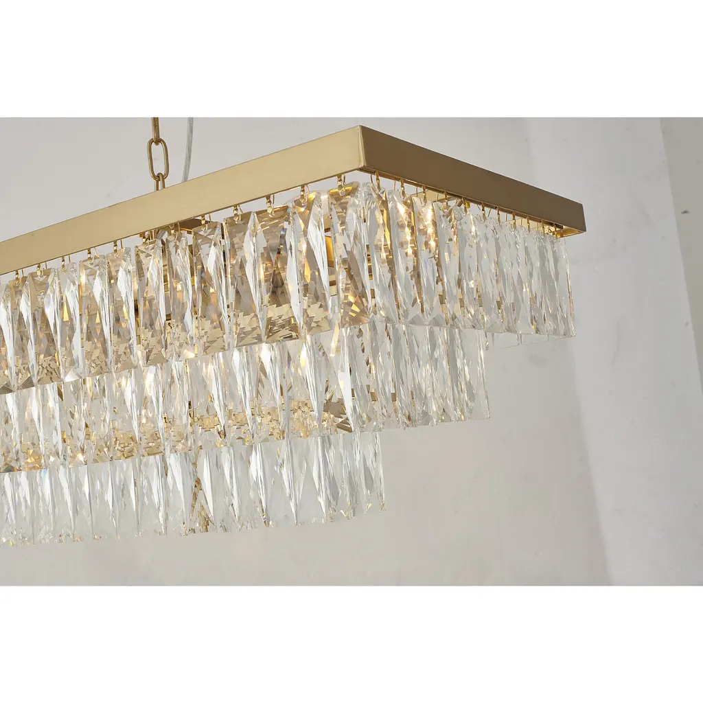 This chandelier is stunning with a gold iron frame decked with strands of faceted clear crystals, and the crystals further highlight the uniqueness of this chandelier. When you hang this modern crystals chandelier in a room, you will easily be surprised by the magnificent light reflected by the crystals. This fixture showcase opulence and elegance and is the perfect modern accent to any space. If you are also looking for a light source for your living room, foyer, staircase, or dinning room. The adjustable chain link makes this fixture suitable for most ceiling heights.