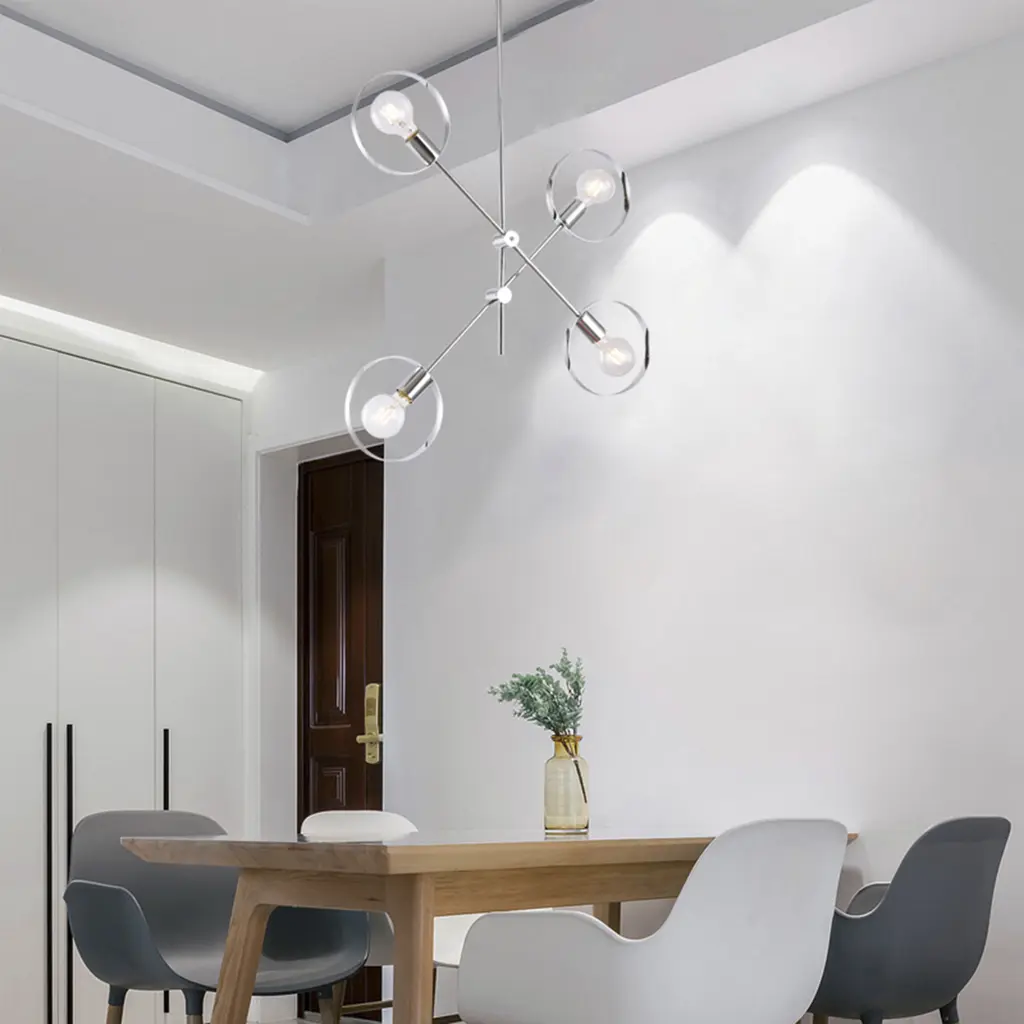 This chandelier is a classic and traditional lighting fixture that adds a touch of sophistication to any room. The chrome iron frame provides a warm and rich finish, while the round socket arm design creates a sense of elegance and refinement. The fixture is designed to accommodate 4xE26 bulbs (Bulbs Not Included), each with a 60W output, which provides ample illumination for a large space. The dimensions of the fixture are 24.8 inches in diameter and 31.8 inches high, making it a great option for living room, dinning room, or foyer.