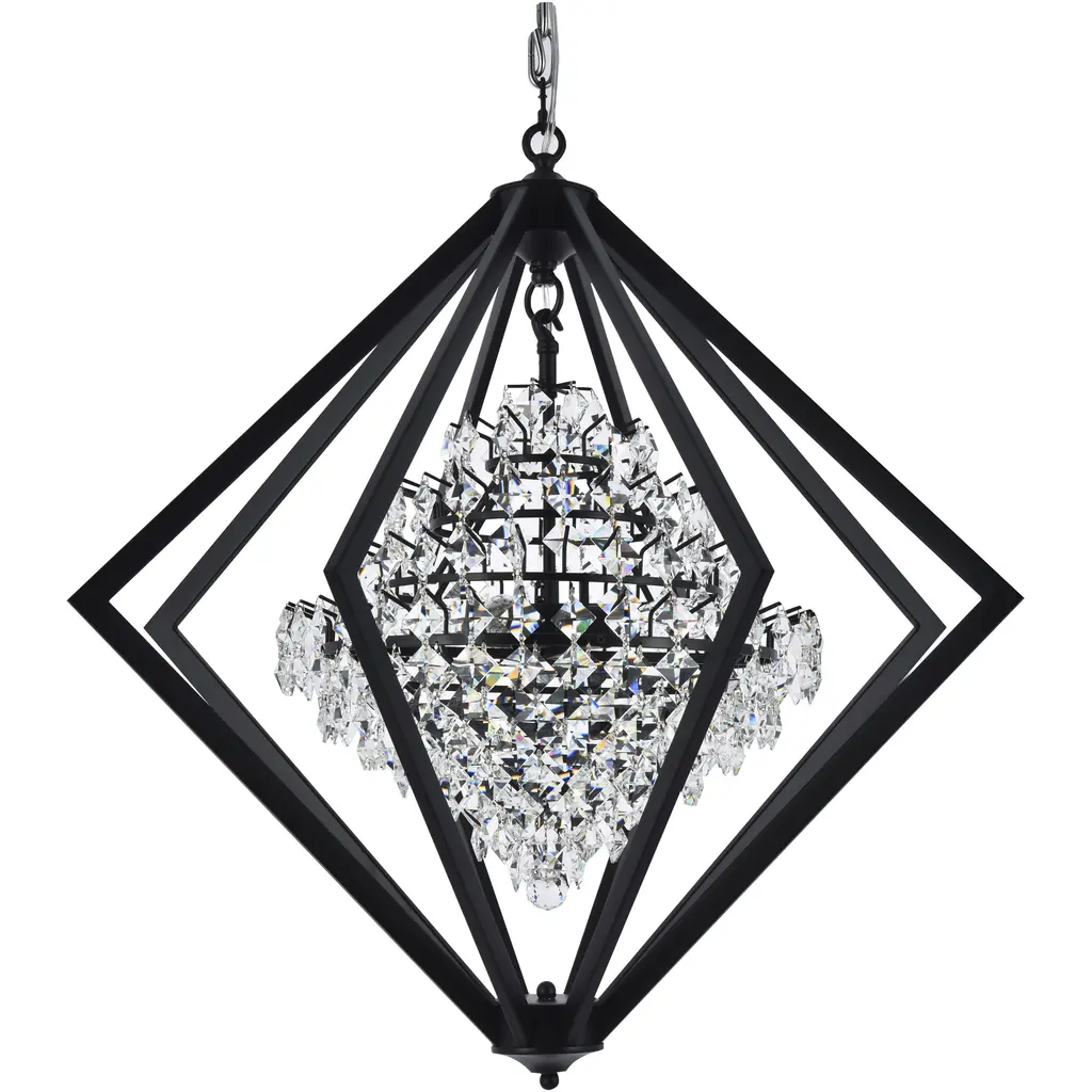 Refresh your home décor with this 4-light transitional chandelier. This fixture is dazzling and unique with clear crystals glimmer on a black metal frame. When you hang this modern crystal chandelier in your living room, dinning area, entryway, or foyer, you will easily be surprised by the magnificent light reflected by the crystals. The adjustable chain links make this fixture suitable for most ceiling heights.