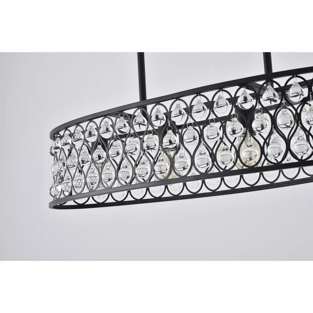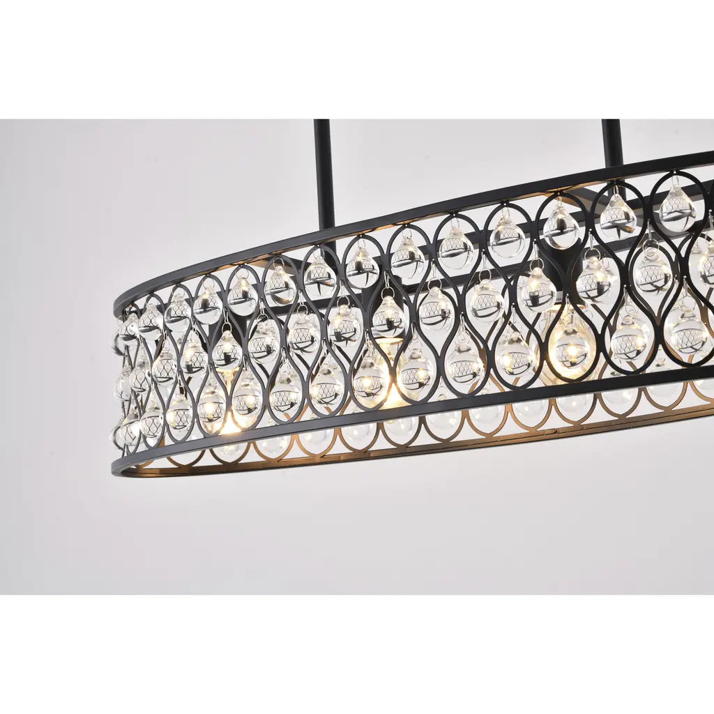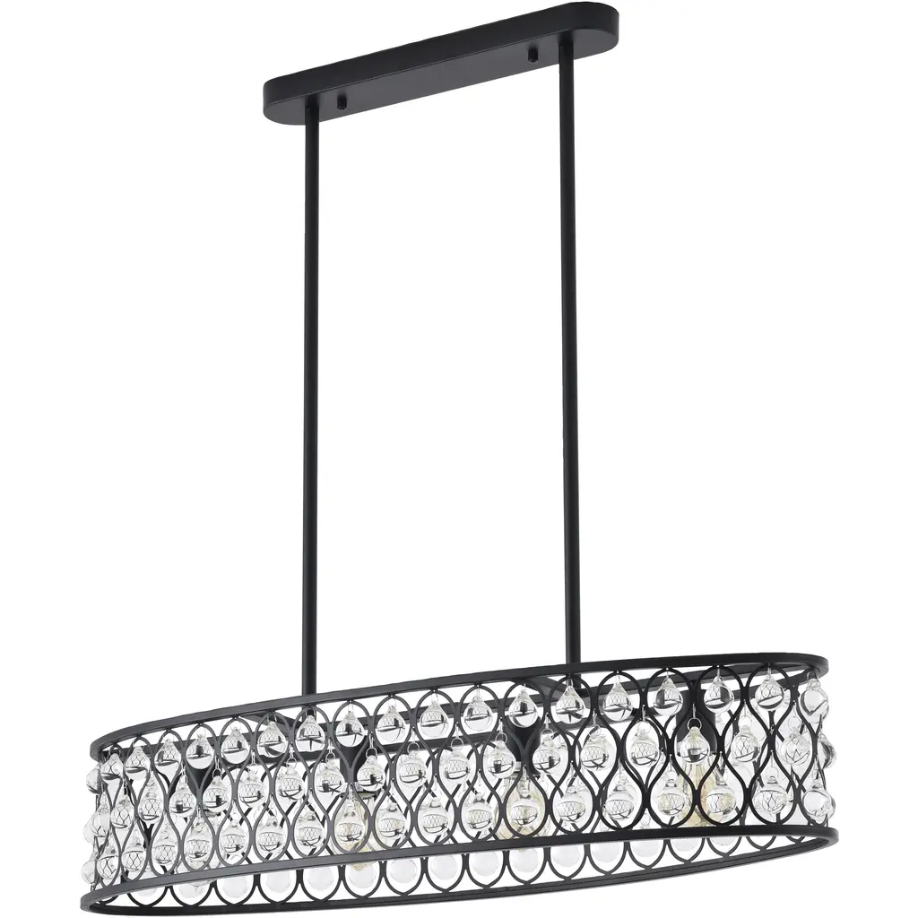 Refresh your home décor with this 3-light contemporary chandelier. This fixture is dazzling and unique with clear crystals glimmer on a black metal frame. When you hang this modern crystal chandelier in your bedroom, living room, dinning area, or foyer, you will easily be surprised by the magnificent light reflected by the crystals. The adjustable rod links make this fixture suitable for most ceiling heights.