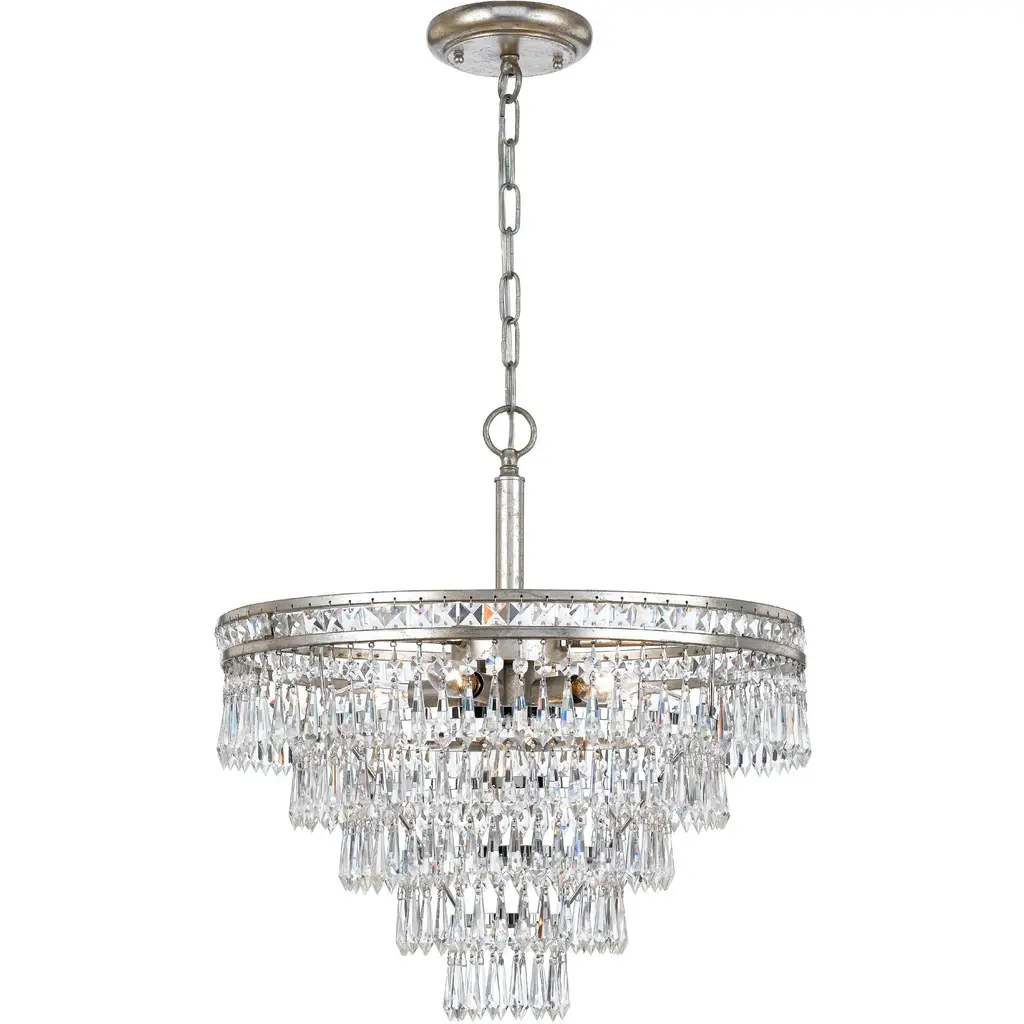 This transitional chandelier is stunning with a pewter iron frame decked with strands of faceted clear crystals, and the crystals further highlight the uniqueness of this fixture. When you hang this modern chandelier in your home, you will easily be surprised by the magnificent light reflected by the crystal accents. If you are also looking for a light source for your living room, foyer, entryway, or dinning room, this chandelier can easily fit into your modern home decor.