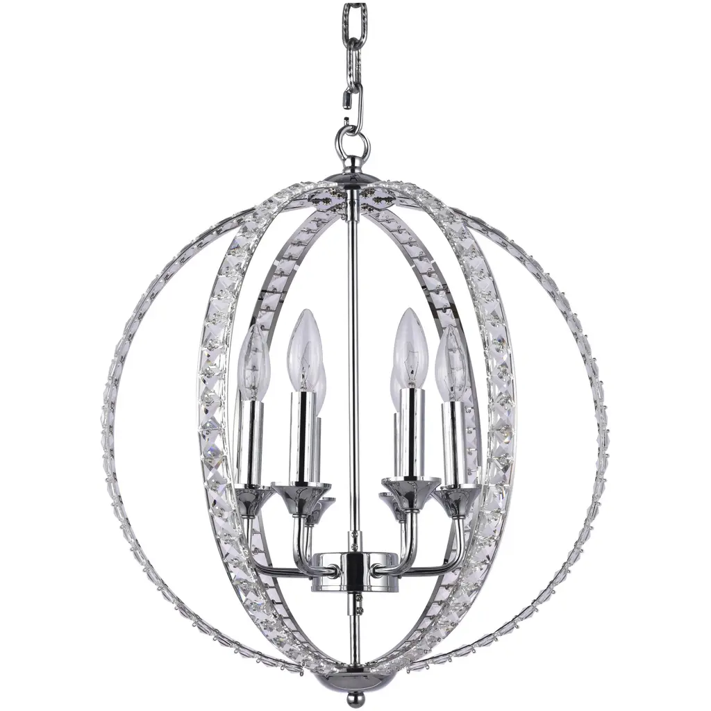 Refresh your home décor with this 6-light transitional chandelier. This fixture is dazzling and unique with clear crystals glimmer on a chrome metal frame. When you hang this modern crystal chandelier in your living room, dinning area, entryway, or foyer, you will easily be surprised by the magnificent light reflected by the crystals. The adjustable chain links make this fixture suitable for most ceiling heights.
