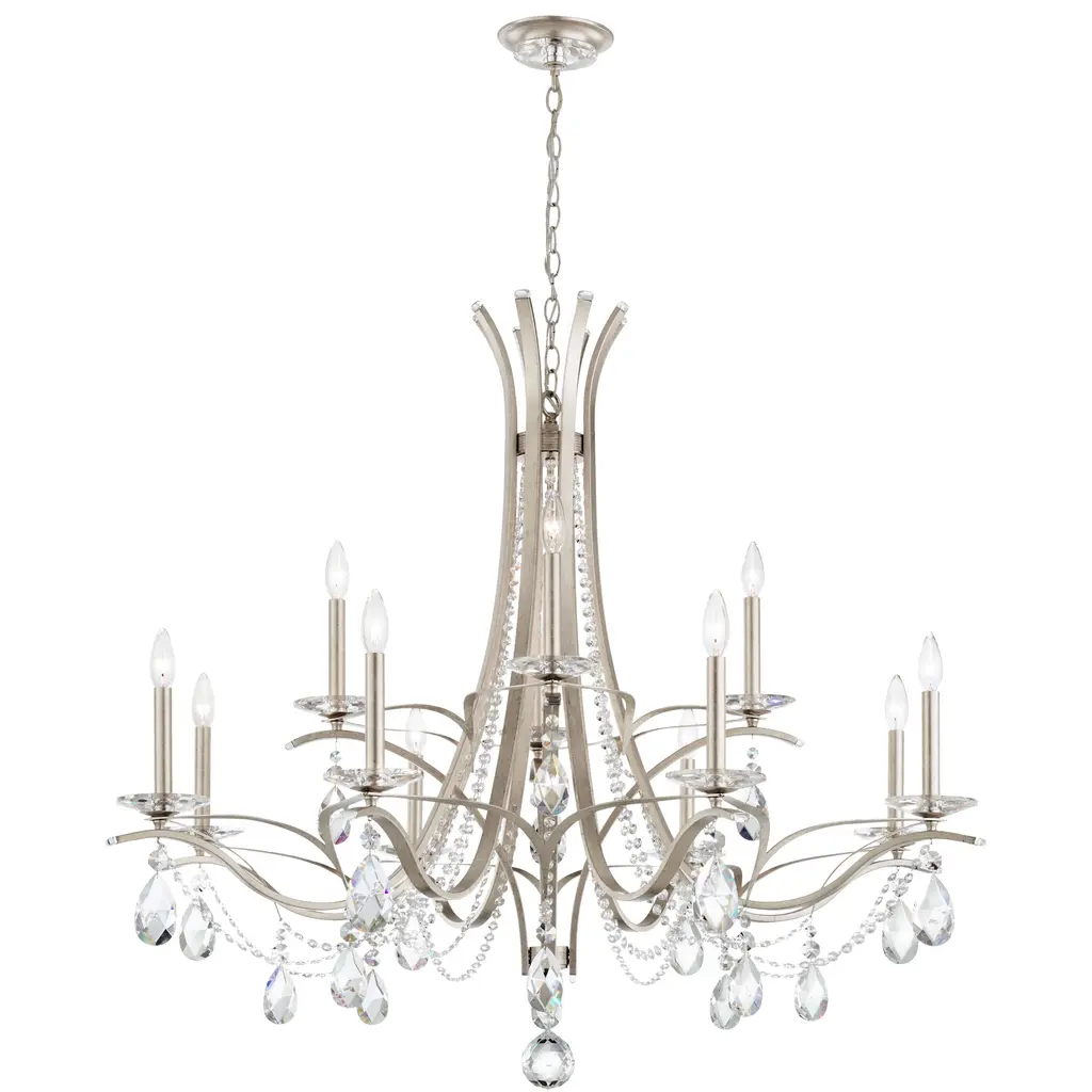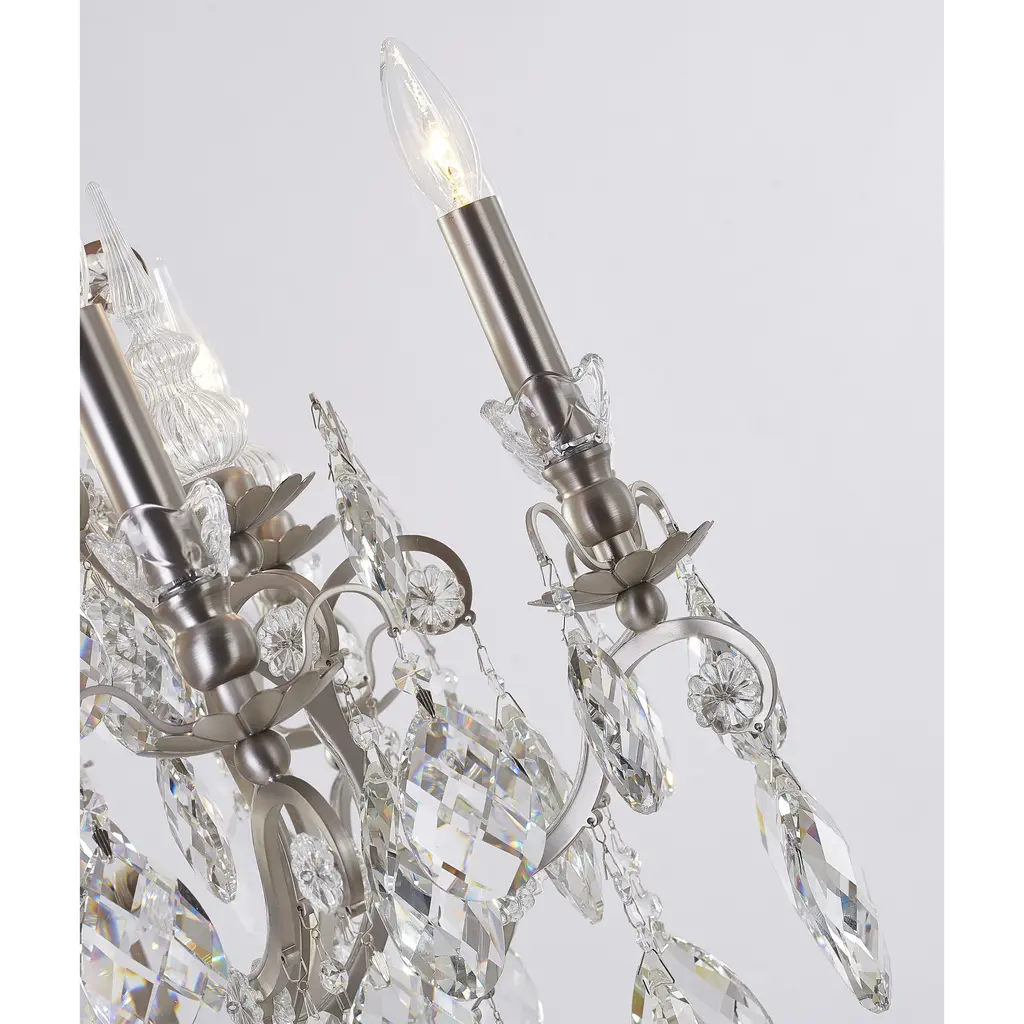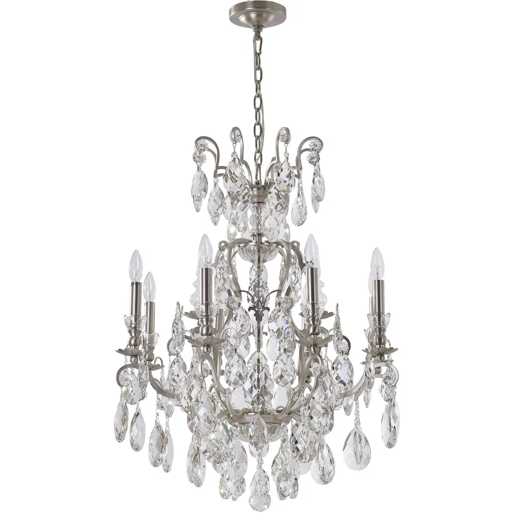 This contemporary chandelier is stunning with a pewter iron frame decked with strands of faceted clear crystals, and the crystals further highlight the uniqueness of this fixture. When you hang this modern chandelier in your home, you will easily be surprised by the magnificent light reflected by the crystal accents. If you are also looking for a light source for your living room, foyer, entryway, or dinning room, this chandelier can easily fit into your modern home decor.
