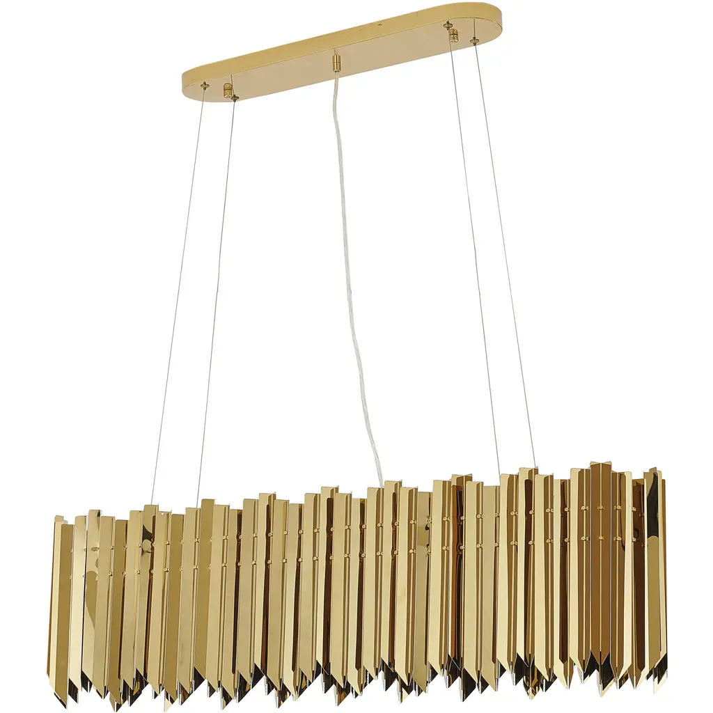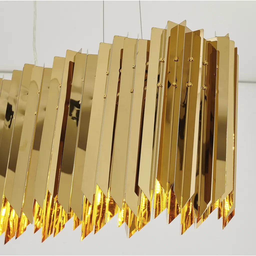 This transitional chandelier is a sleek and modern lighting fixture that adds a touch of sophistication to any room. Featuring a gold stainless steel frame, this chandelier measures 42 inches in length, 6.7 inches in width, and 11.4 inches in height. The 6xG9 base and 40W bulbs (Bulbs Not Included) provide energy-efficient lighting, making it an excellent choice for living rooms, dinning rooms, entryway, or foyer. The gold stainless steel frame adds a touch of luxury and glamour, making this sconce a great option for anyone looking to add some elegance to their space.