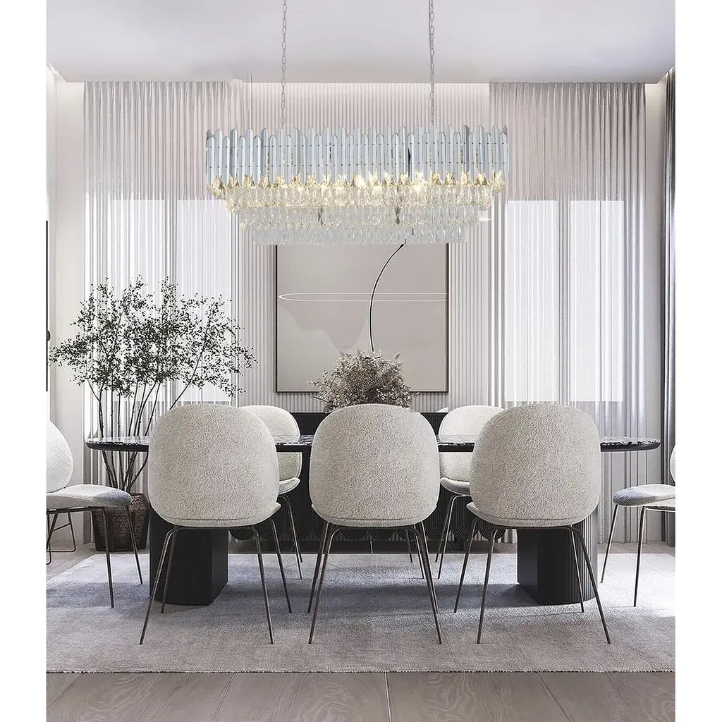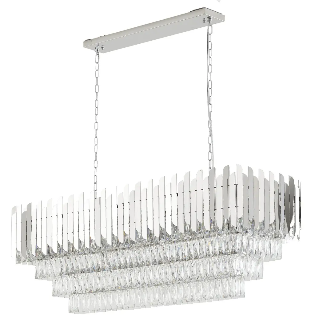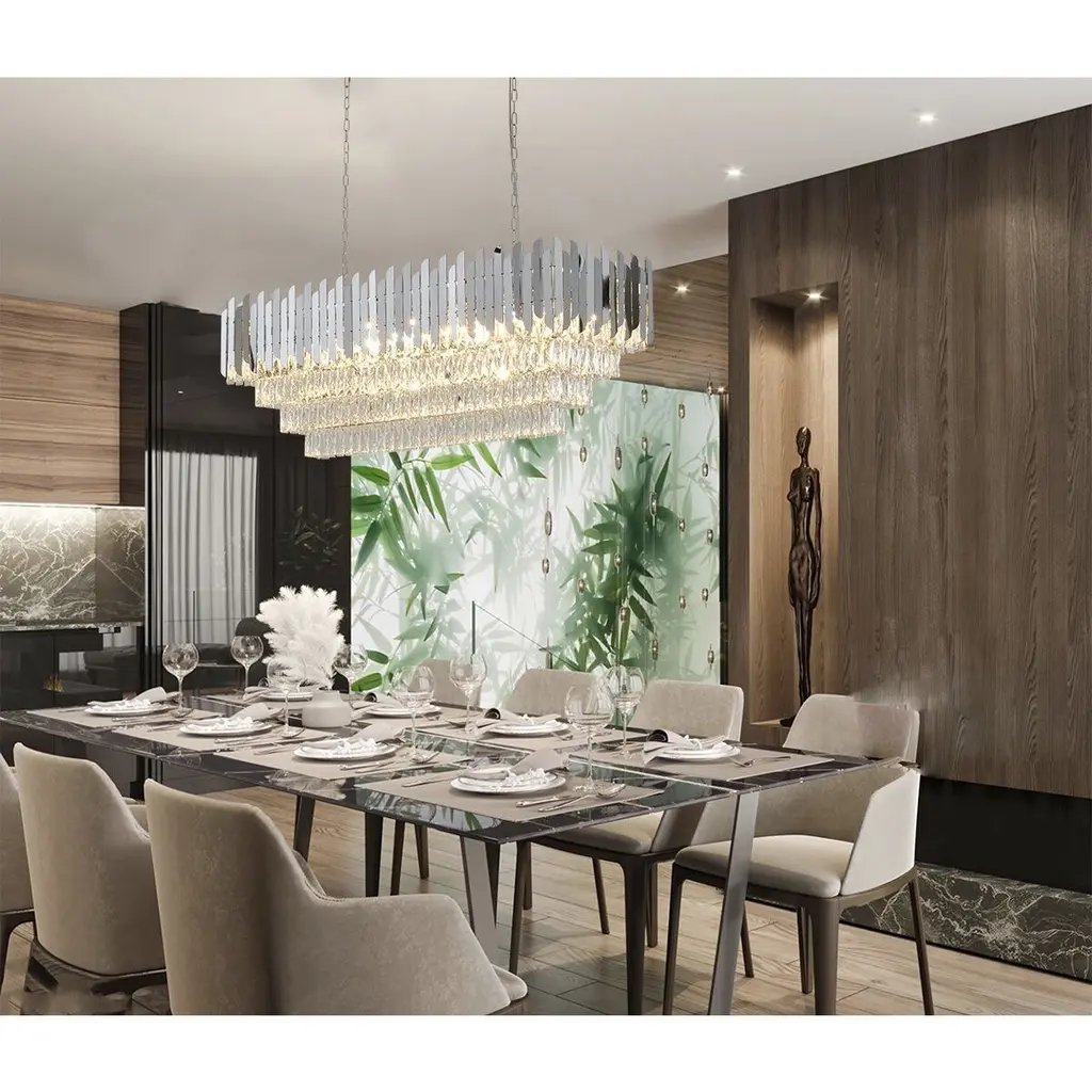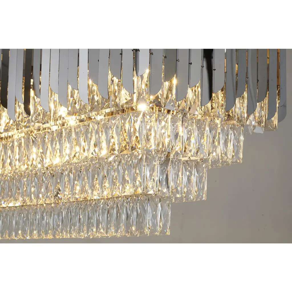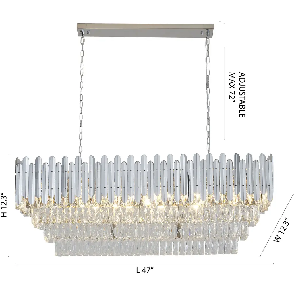 This chandelier is stunning with a chrome stainless steel frame decked with strands of faceted clear hanging crystals, and the crystals further highlight the uniqueness of this chandelier. When you hang this modern crystals chandelier in your home, you will easily be surprised by the magnificent light reflected by the crystals. This fixture showcase opulence and elegance and is the perfect modern accent to any space. If you are also looking for a light source for your living room, foyer, or dinning room, this chandelier can easily fit into your modern home decor.