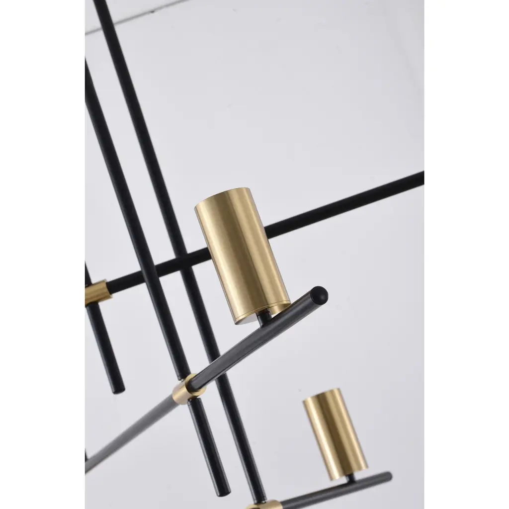This dimmable chandelier is a unique and transitional lighting fixture that adds a touch of sophistication to any room. The black rods provide a sleek and minimalist appearance, while the gold accents add a touch of luxury and elegance. The fixture is designed to accommodate 9xGU10 bulbs (Bulbs Not Included), each with a 40W output, which provides ample illumination for a large space. The dimensions of the fixture are 55.1 inches long, 55.1 inches wide, and 32 inches high, making it a great option for installing as a ceiling fixture or pendant light. The modern design of this fixture makes it suitable for living room, dinning room, or entryway.