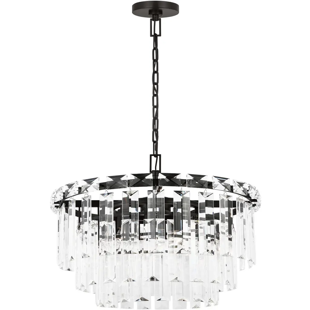 Inspired by the Art Deco style of 1920s Paris, the Arden series by Chapman and Myers captures the period's fascination with geometric forms. A stunning addition to an entryway, great room, or above a large dining table, the Arden tiered chandelier features panels of textured glass that hang in linear architectural tiers from a solid metal frame.