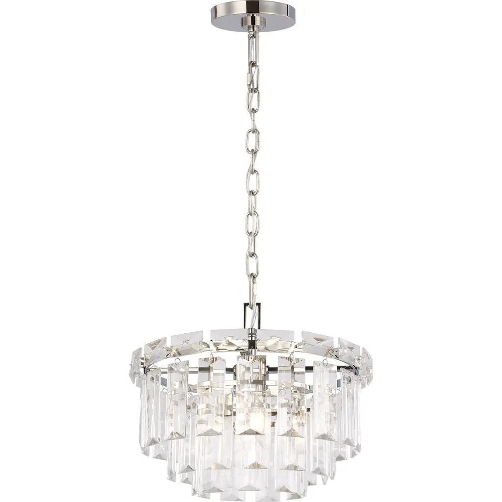 Inspired by the Art Deco style of 1920s Paris, the Arden series from C&M by Chapman and Myers captures the period's fascination with geometric forms. A stunning addition to an entryway, great room, or above a large dining table, the Arden tiered chandelier features panels of textured glass that hang in linear architectural tiers from a solid metal frame.