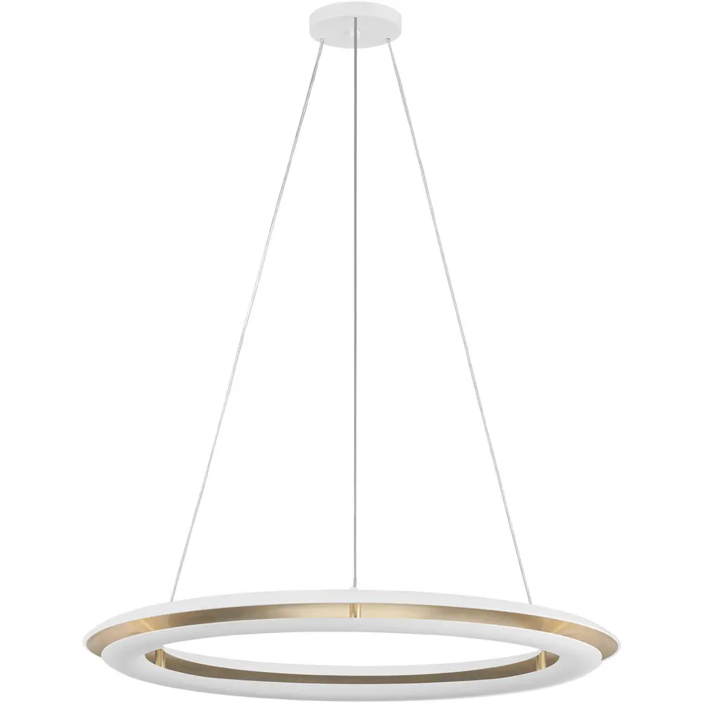 Inspired by the Spanish word for sky, the Cielo ring chandelier by Chapman & Meyers has a convex profile and emits a soft halo-like glow. The lower of the two curved metal bands conceals the upward-shining LED light source, while the upper band and the gilded interior surfaces reflect the light. Suspended by 3 delicate steel cables, the Cielo chandelier will complement modern living and dining rooms, bedrooms, hallways and entryways.