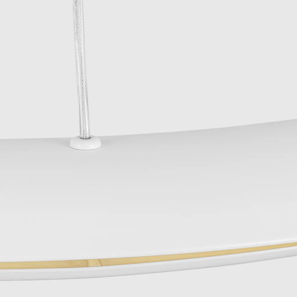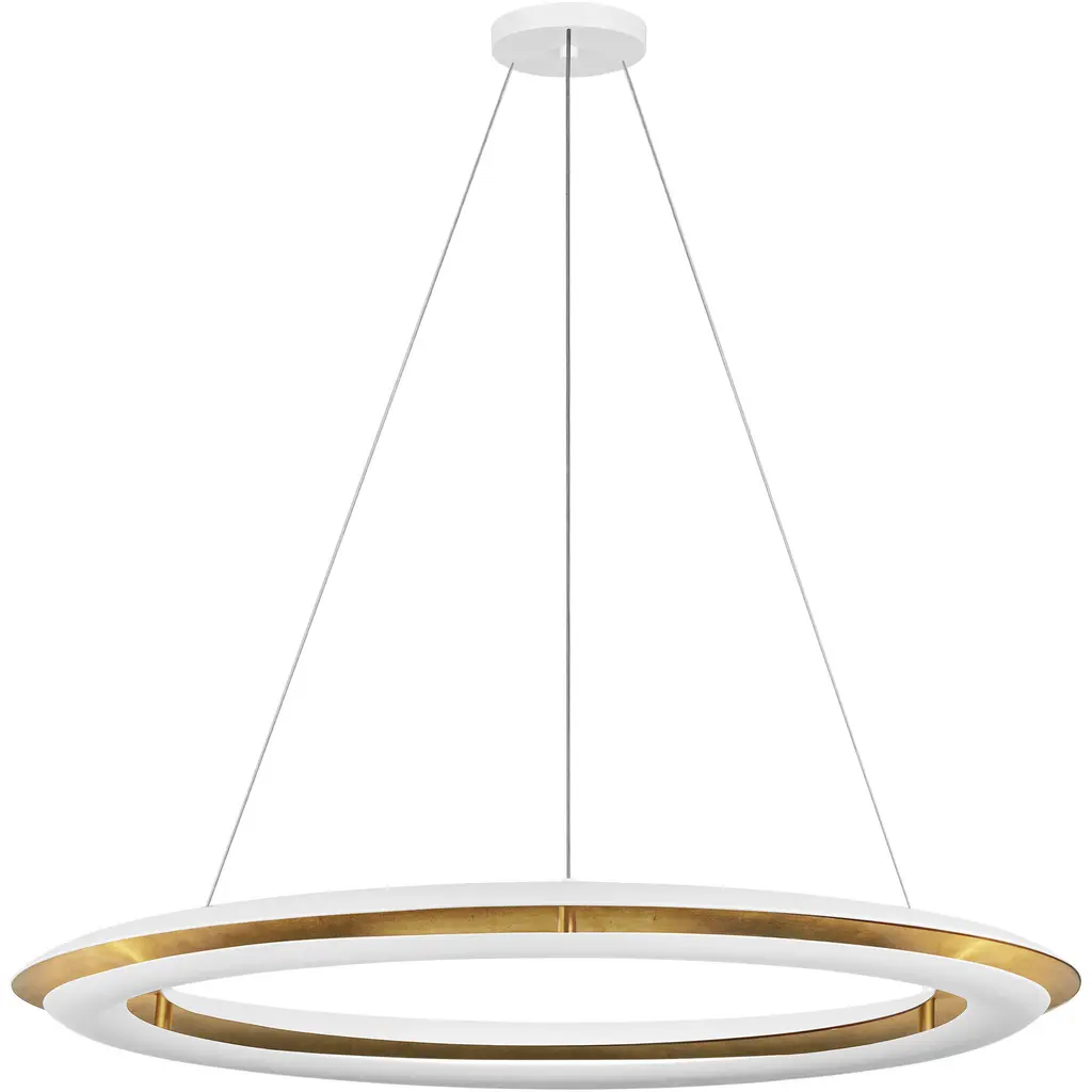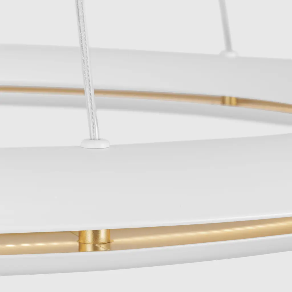 Inspired by the Spanish word for sky, the Cielo ring chandelier by Chapman & Meyers has a convex profile and emits a soft halo-like glow. The lower of the two curved metal bands conceals the upward-shining LED light source, while the upper band and the gilded interior surfaces reflect the light. Suspended by 3 delicate steel cables, the Cielo chandelier will complement modern living and dining rooms, bedrooms, hallways and entryways.