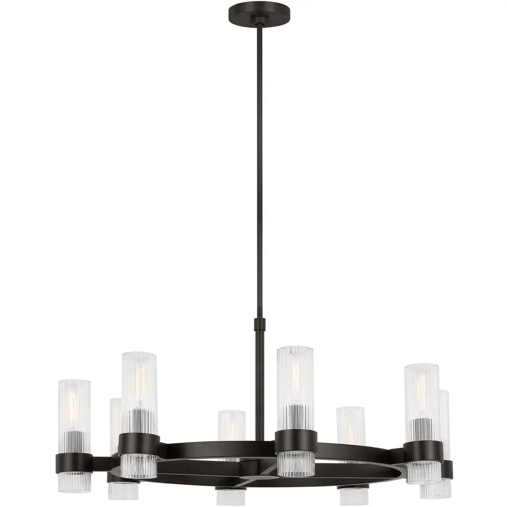 Designed by Chapman & Myers, the Geneva eight-light single-tier chandelier in Aged Iron supplies ample lighting for your daily needs while adding a layer of today's style to your home's décor. A fluted shade forms an elegant, dynamic silhouette balanced by a strong frame of Aged Iron, Burnished Brass, or Polished Nickel.