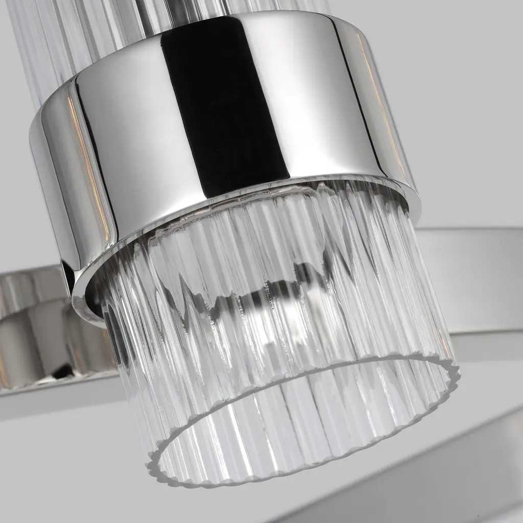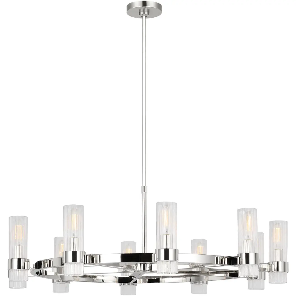 Designed by Chapman & Myers, the Geneva eight-light single-tier chandelier in Polished Nickel is the perfect way to achieve your desired fashion or functional needs in your home. A fluted shade forms an elegant, dynamic silhouette balanced by a strong frame of Aged Iron, Burnished Brass, or Polished Nickel.