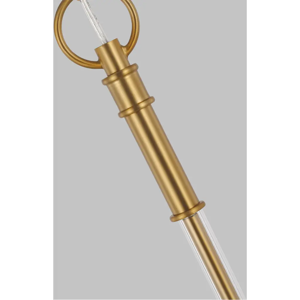 The Beckett family from Chapman & Myers presents Art Deco forms with a modern minimalist sensibility. Crafted of steel, a round metal band holds the clear extruded glass cylinders in place.