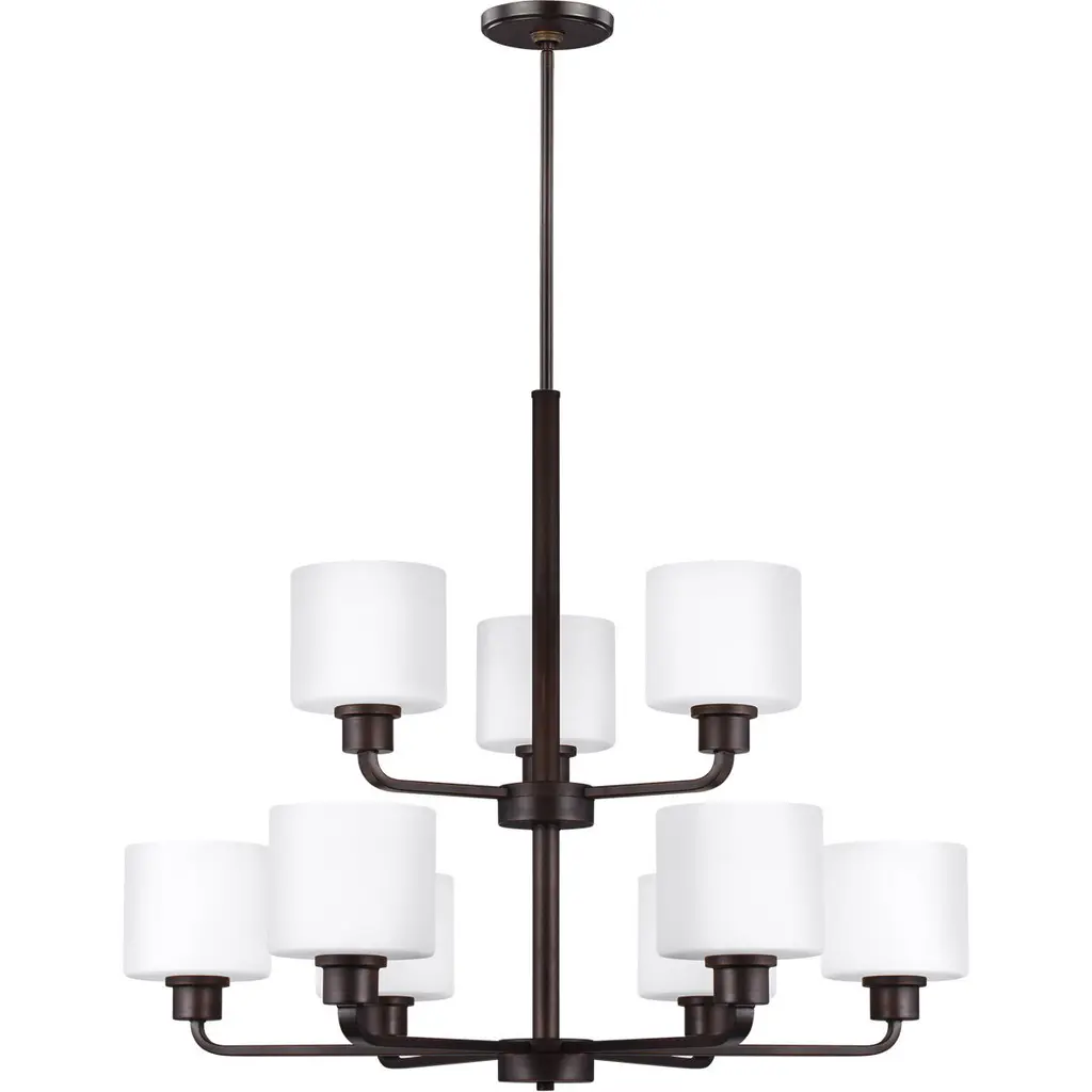 The Canfield nine light multi-tier chandelier in bronze is an ENERGY STAR½ qualified lighting fixture that uses LED bulbs to save you both time and money. Behind every seemingly simple design lies unerring attention to restraint and obsessive attention to the tiniest details. The Canfield collection by draws on the modernist traditions of "less is more". Essential functional elements dictate the aesthetics, and clean lines prevail. Layers of intricately finished hand-brushed steel progress vertically to the soft glow of light diffused through finely etched glass diffusors. Canfield offers a "whole home" lighting solution; offering lighting in every imaginable category from the auspicious 15 light 3-tier chandelier, to the concise mini-pendant and one-light sconces. The collection is available in hand brushed Burnt Sienna for a warm, tactile, almost Craftsman design style, or a brushed nickel to emphasize the more architectural elements of your interior.