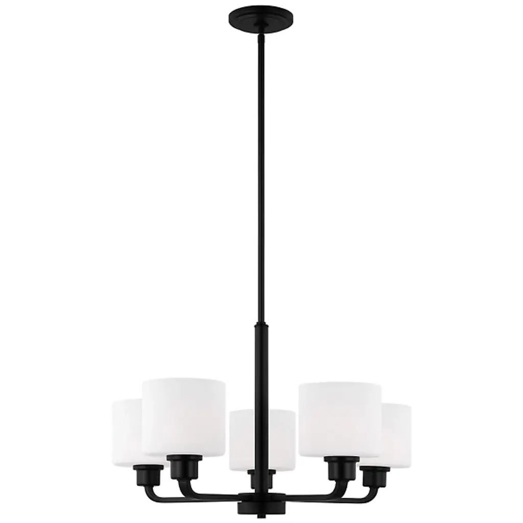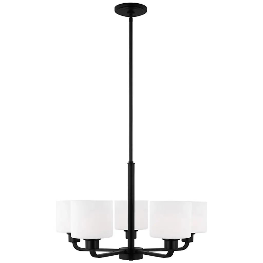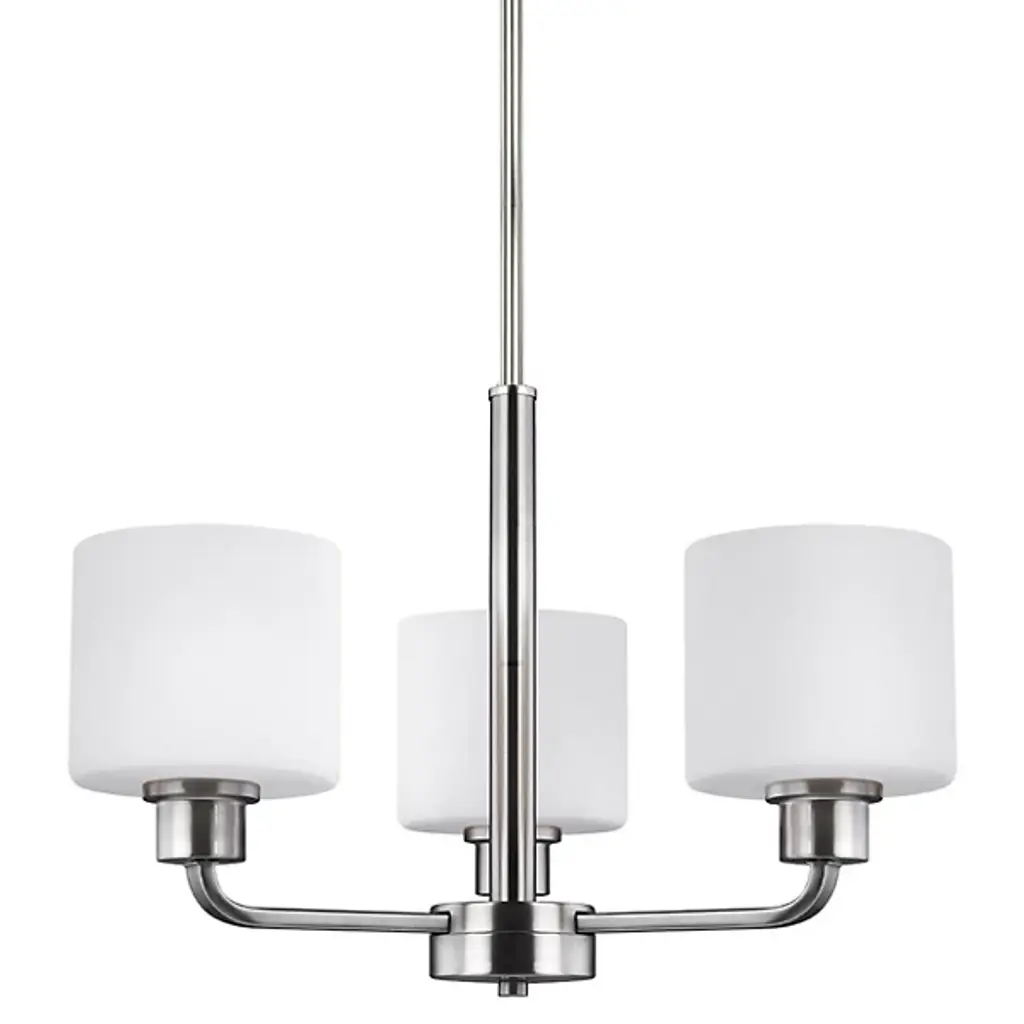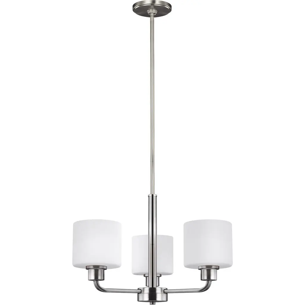 The Canfield Chandelier by Generation Lighting, formerly known as Sea Gull Lighting, is understated and carefully designed to brighten your home with a lovely, classic look. Hand-brushed steel makes up the body of the chandelier, and a soft, ambient light glows from within finely etched glass diffusers that are reminiscent of votive candleholders. Simplicity is key in this elegant and versatile fixture.