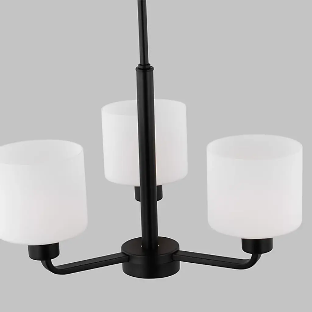 The Canfield Chandelier by Generation Lighting, formerly known as Sea Gull Lighting, is understated and carefully designed to brighten your home with a lovely, classic look. Hand-brushed steel makes up the body of the chandelier, and a soft, ambient light glows from within finely etched glass diffusers that are reminiscent of votive candleholders. Simplicity is key in this elegant and versatile fixture.