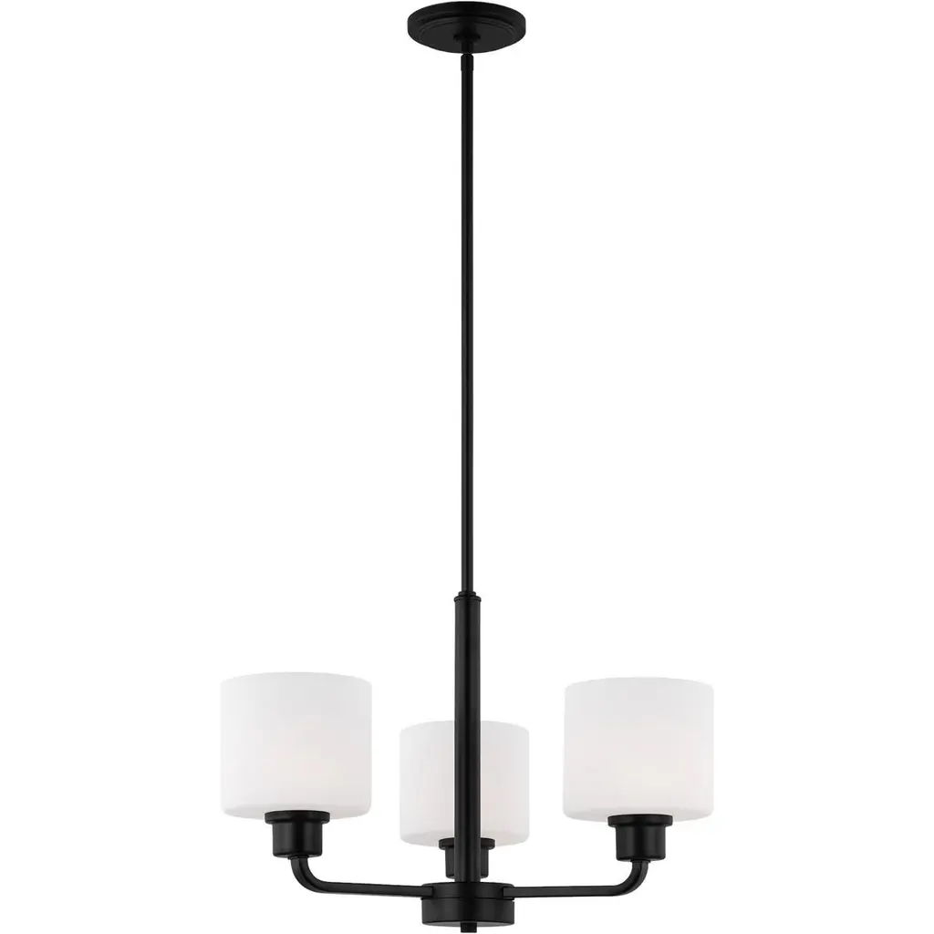 The Canfield three light single tier chandelier in Midnight Black is the perfect way to achieve your desired fashion or functional needs in your home. Behind every seemingly simple design lies unerring attention to restraint and obsessive attention to the tiniest details. The Canfield collection by draws on the modernist traditions of "less is more". Essential functional elements dictate the aesthetics, and clean lines prevail to the soft glow of light diffused through finely etched glass diffusors. Canfield offers a "whole home" lighting solution; offering lighting in every imaginable category from the auspicious 9 light 2-tier chandelier, to the concise mini-pendant and one-light sconces. The collection is also available in hand brushed Bronze for a warm, tactile, almost Craftsman design style, or a Brushed Nickel to emphasize the more architectural elements of your interior.