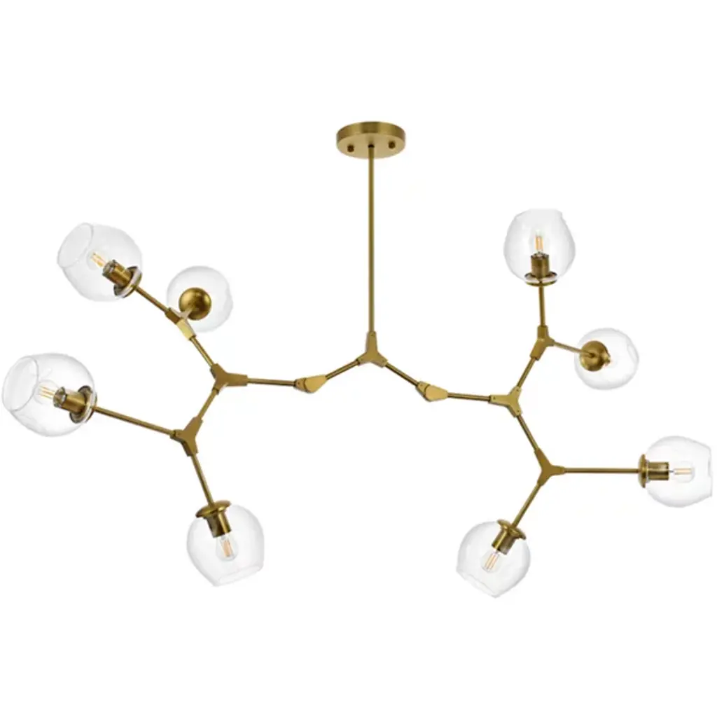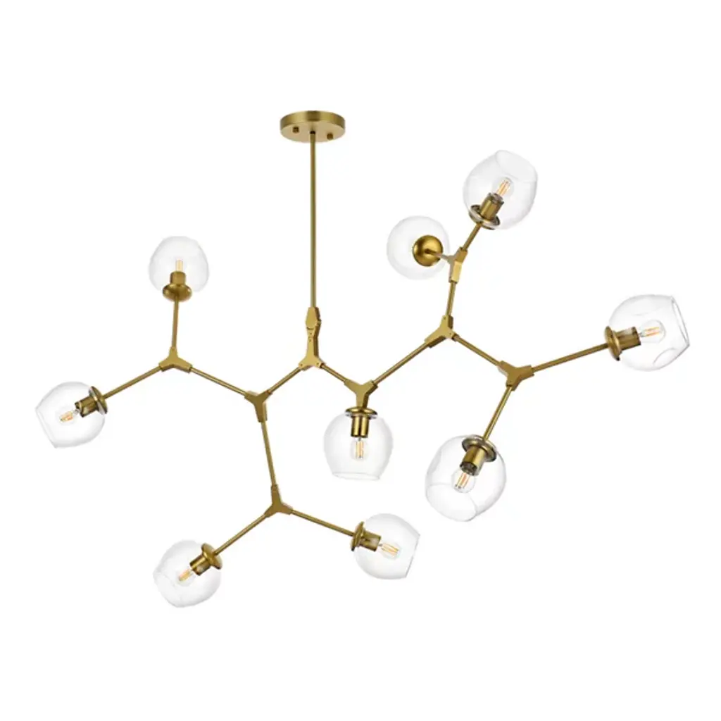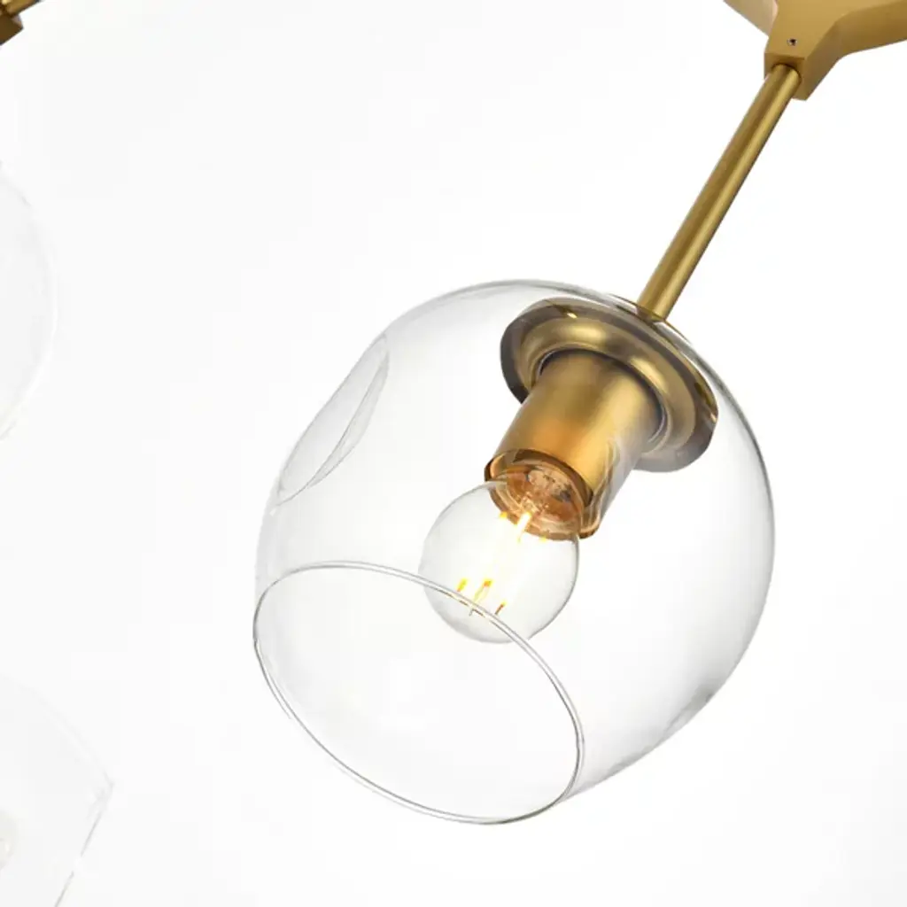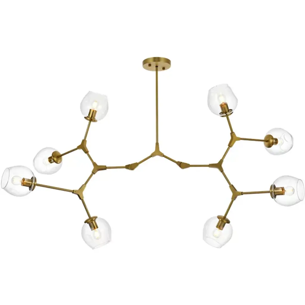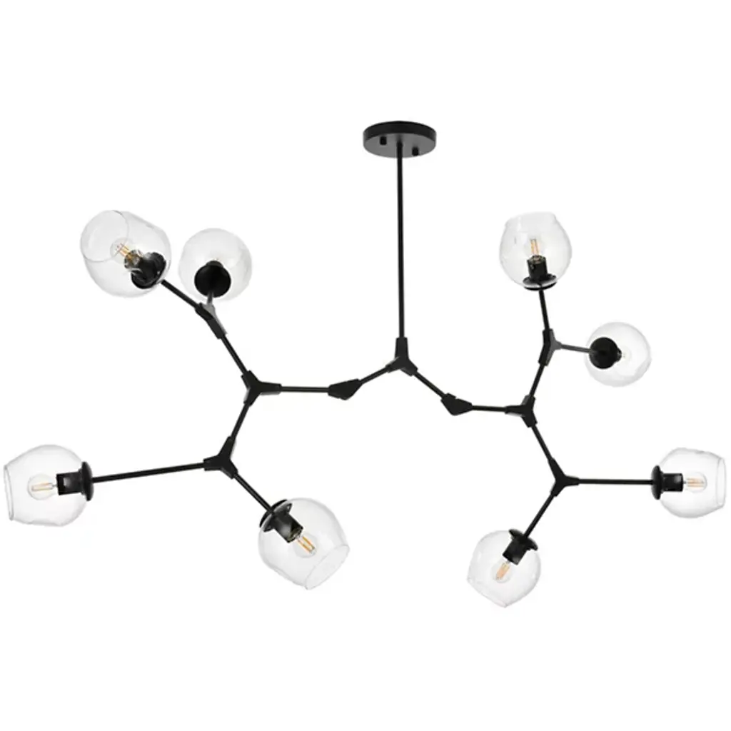 The Canilie Chandelier from Huxe perfectly fuses contemporary design with geometric allure. The fixture is fashioned from durable iron, creating a visually captivating centerpiece that adds a smooth modern aesthetic and creates a robust lighting design. The metal frame supports a series of lights placed inside clear glass cup shades, creating a stunning visual display. Its UL certification guarantees safety and performance, making it an ideal choice for spaces that embrace Mid-Century Modern and Transitional design styles.
