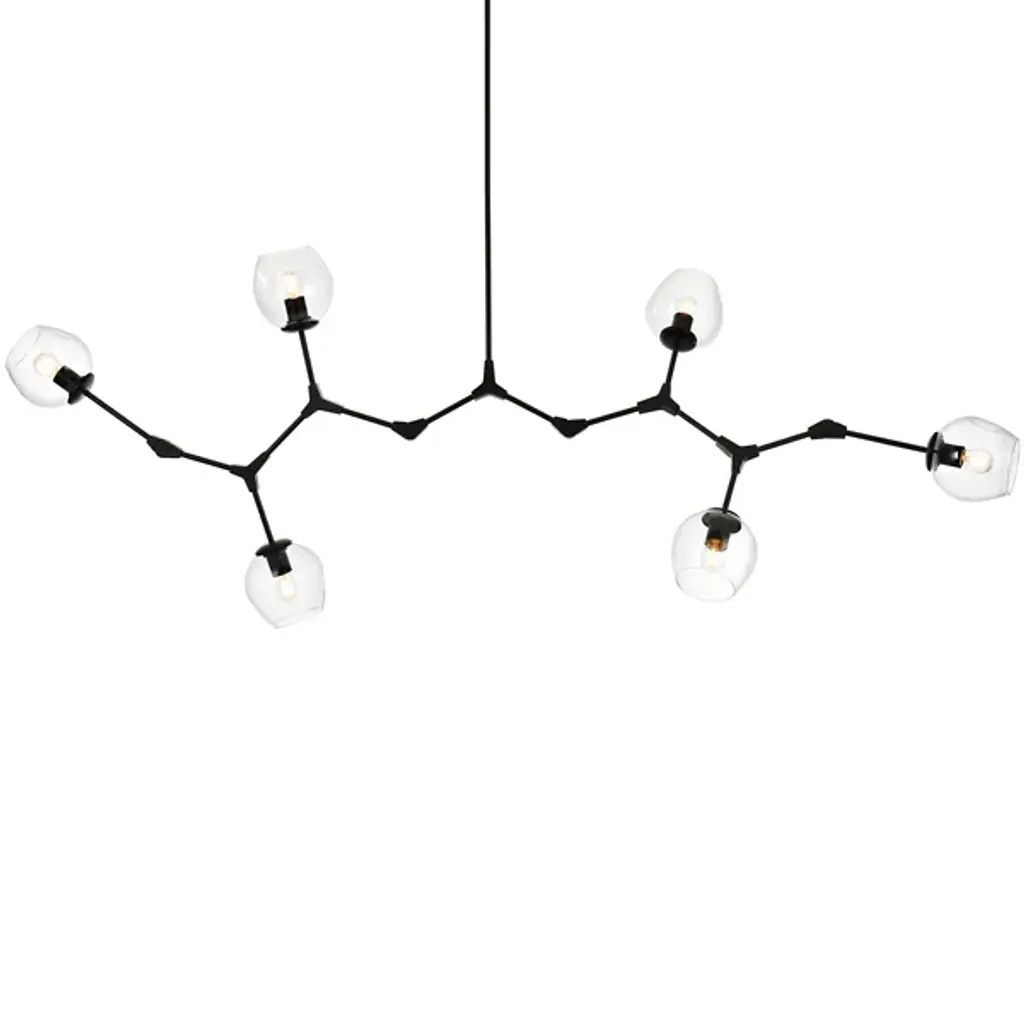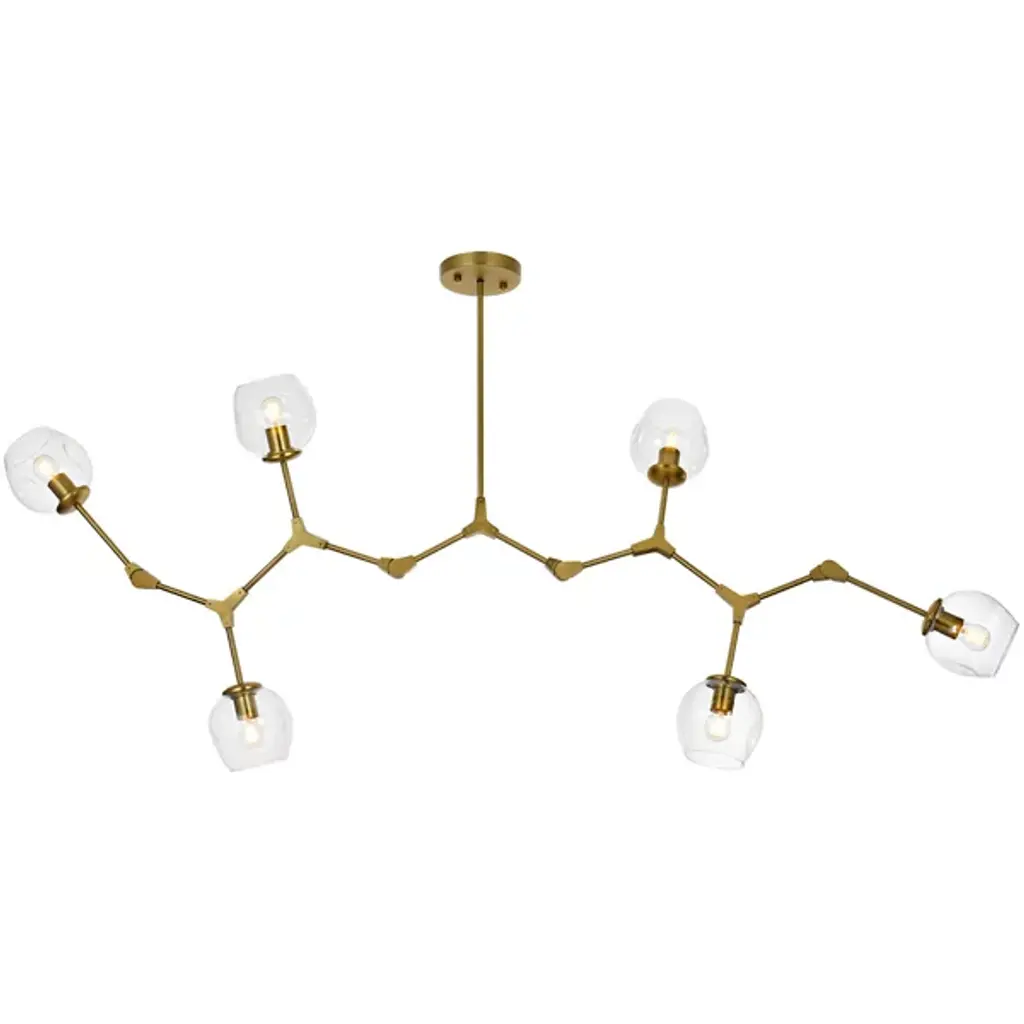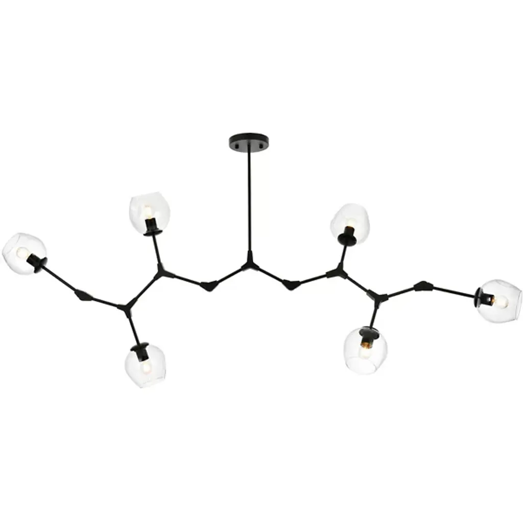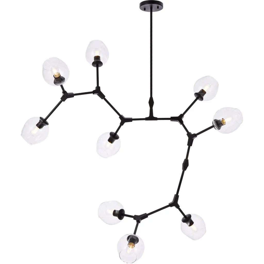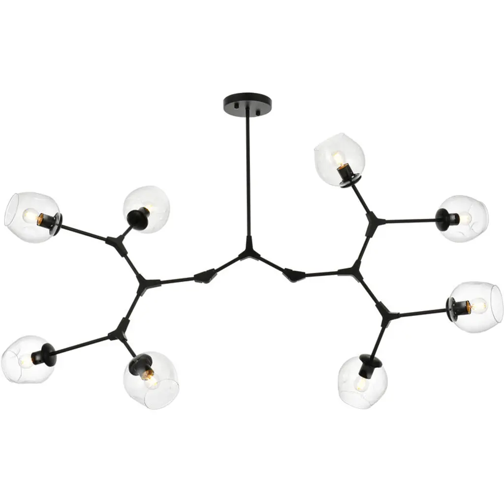 The Canille Large Chandelier from Huxe combines clean, contemporary design with geometric elegance. A durable iron construction stretching down from a single stem, this branching fixture complements Mid-Century Modern and Transitional environments. It becomes a sculptural centerpiece, enhancing any space with its angular and branching aesthetic. The metal frame supports multiple lights in clear glass cup shades at the end of angular metal branches, creating a stunning visual effect of glow and direct light. UL certified for safety and performance, it’s an excellent choice for interiors seeking abstract sculpture and intricate texture.