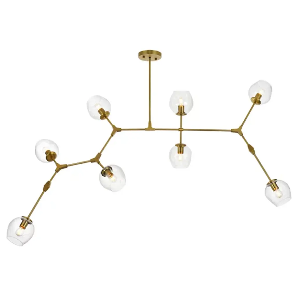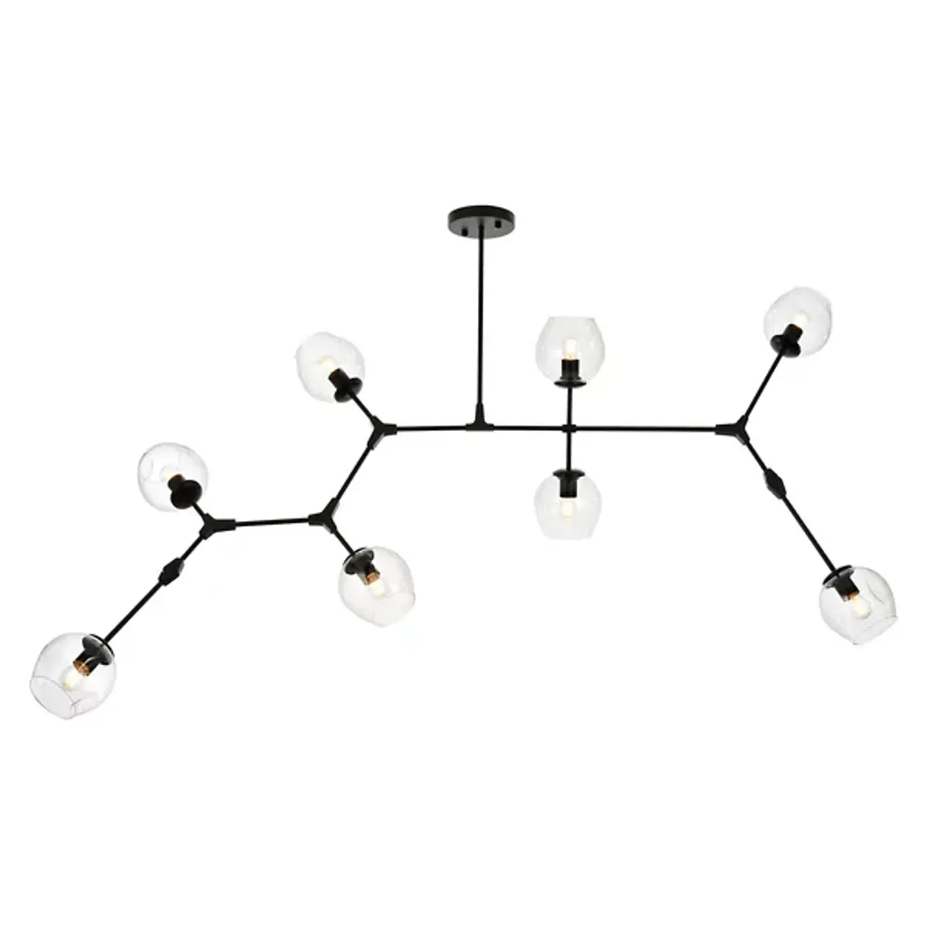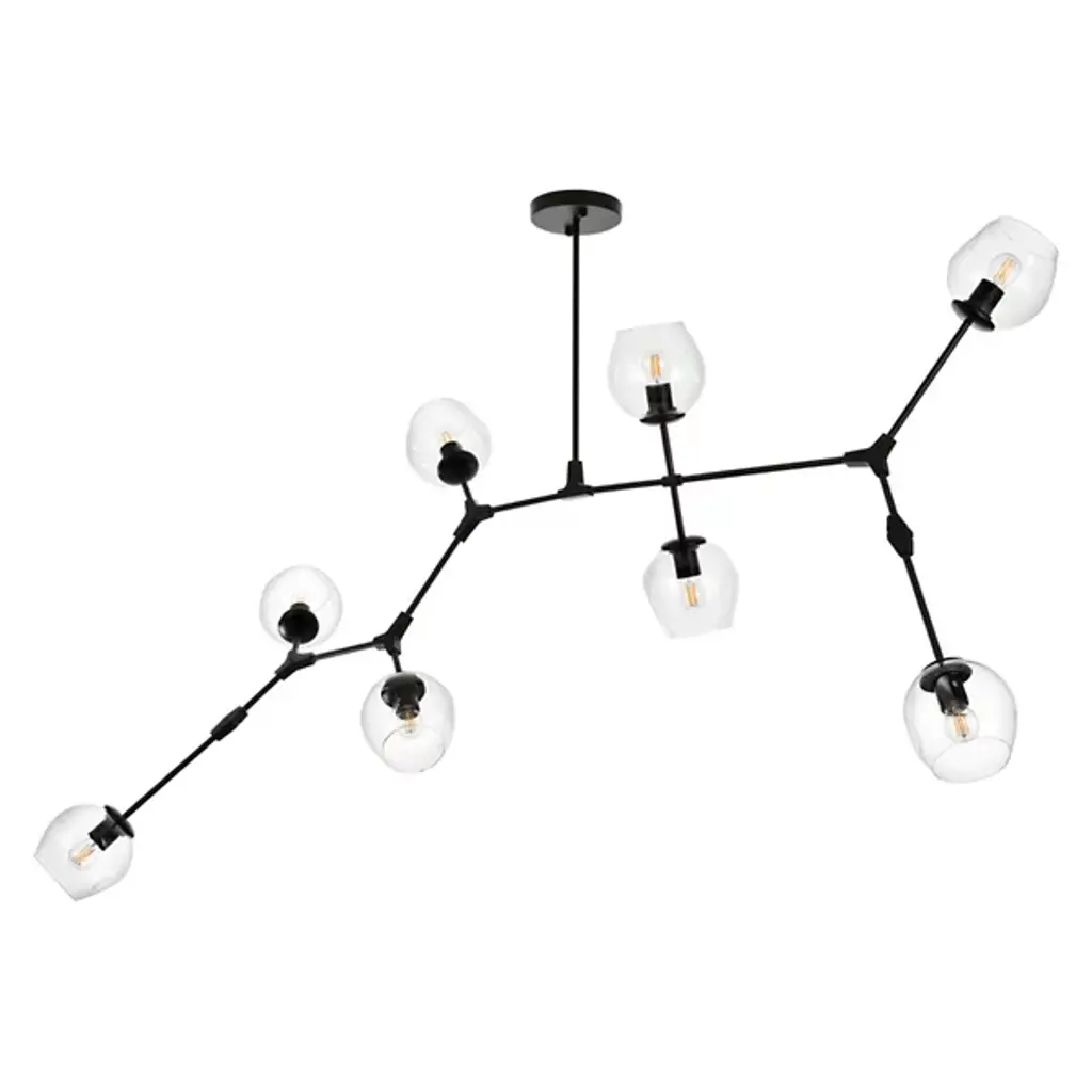 The Canille Large Chandelier from Huxe combines clean, contemporary design with geometric elegance. A durable iron construction stretching down from a single stem, this branching fixture complements Mid-Century Modern and Transitional environments. It becomes a sculptural centerpiece, enhancing any space with its angular and branching aesthetic. The metal frame supports multiple lights in clear glass cup shades at the end of angular metal branches, creating a stunning visual effect of glow and direct light. UL certified for safety and performance, it’s an excellent choice for interiors seeking abstract sculpture and intricate texture.