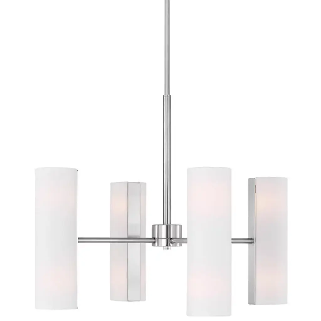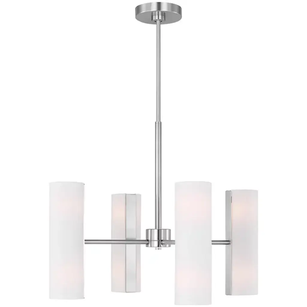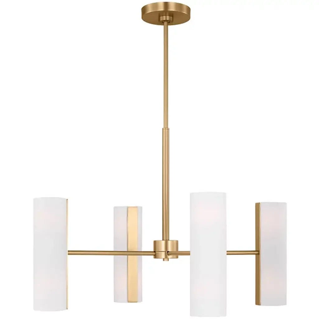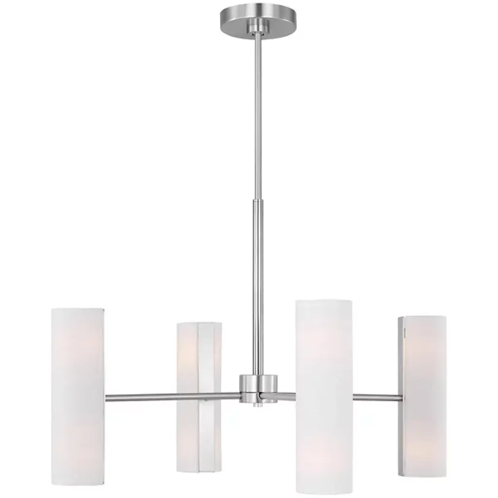 The Capalino Chandelier by Visual Comfort Studio brings refined elegance to your living space. This chandelier is the work of Drew & Jonathan. A slender downrod is secured by a circular canopy at your ceiling. Extending from the center of this fixture is a linear framework of fine metal that supports a collection of white linen shades. These shades warmly glow with light emanating from LED lamps. The brightness level of the light produced can be easily adjusted when you pair the Capalino Chandelier with an ELV dimmer.