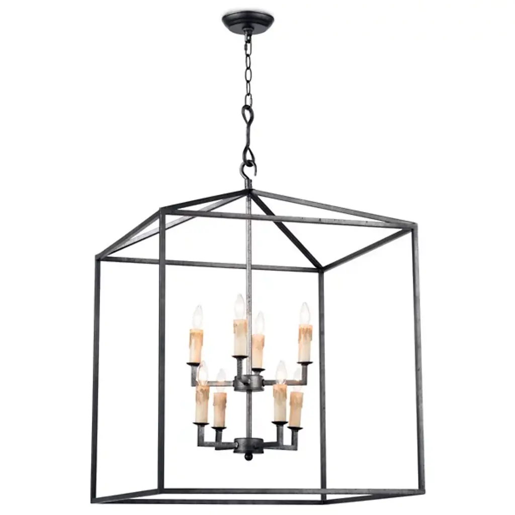 Stacking up the style. Featuring layered luminaires for brilliant lighting performance, the Cape 2-Tier Chandelier by Regina Andrew Design is inherently practical. Yet that's only the beginning of what this fixture has to offer – it's also a visual showstopper, boasting a bold and boxy motif that attracts the eye without distracting from the surrounding décor.