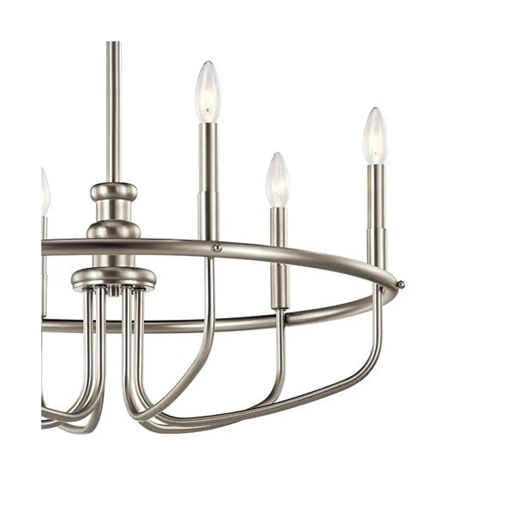 Stately elegance. The Capitol Hill Chandelier from Kichler governs the ambiance in a room with a warm, gracious light. This transitional design complements the modern or traditional home in its refined metal framework. The regal neo-classical columns lifting the architecture of many of Capitol Hill’s buildings are mimicked in the outstretching and rising arms. Candelabra bulbs dotting each arm present a timeless chandelier silhouette. When turned on, the bulbs work together to create an inspiring source of illumination.