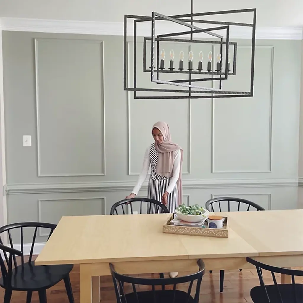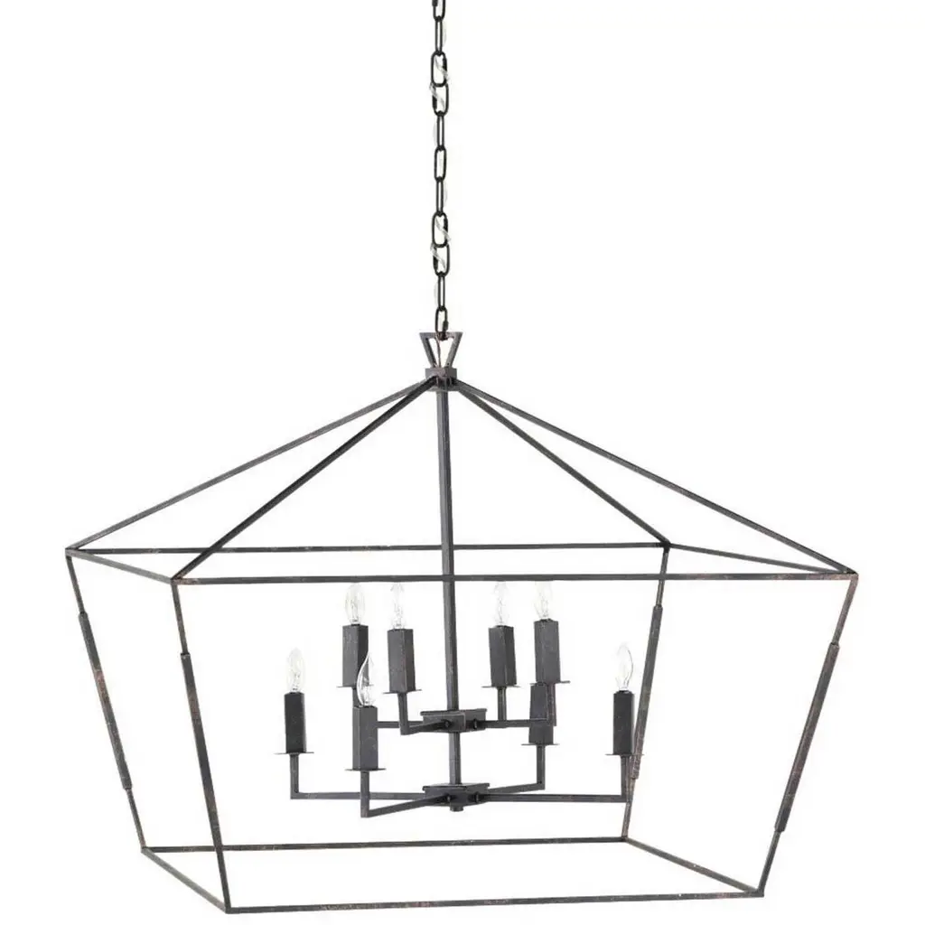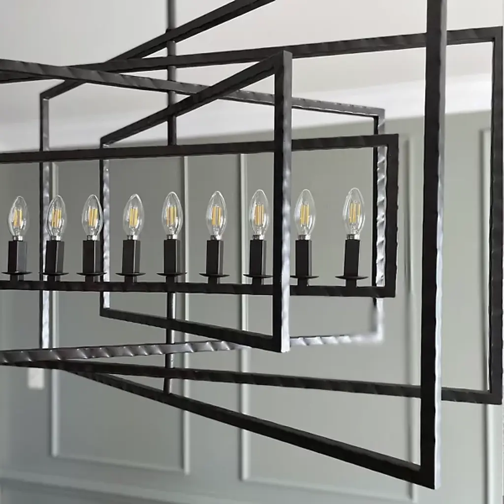 The Crystorama Capri Chandelier is an open and airy lighting fixture made of concentric rectangular rings. This piece also doubles as an interactive sculpture, the rings are adjustable to fit anyone's aesthetic needs. Due to the nature of the fixture, this piece looks different from every angle it is viewed at, always presenting a new and interesting look for the viewer.