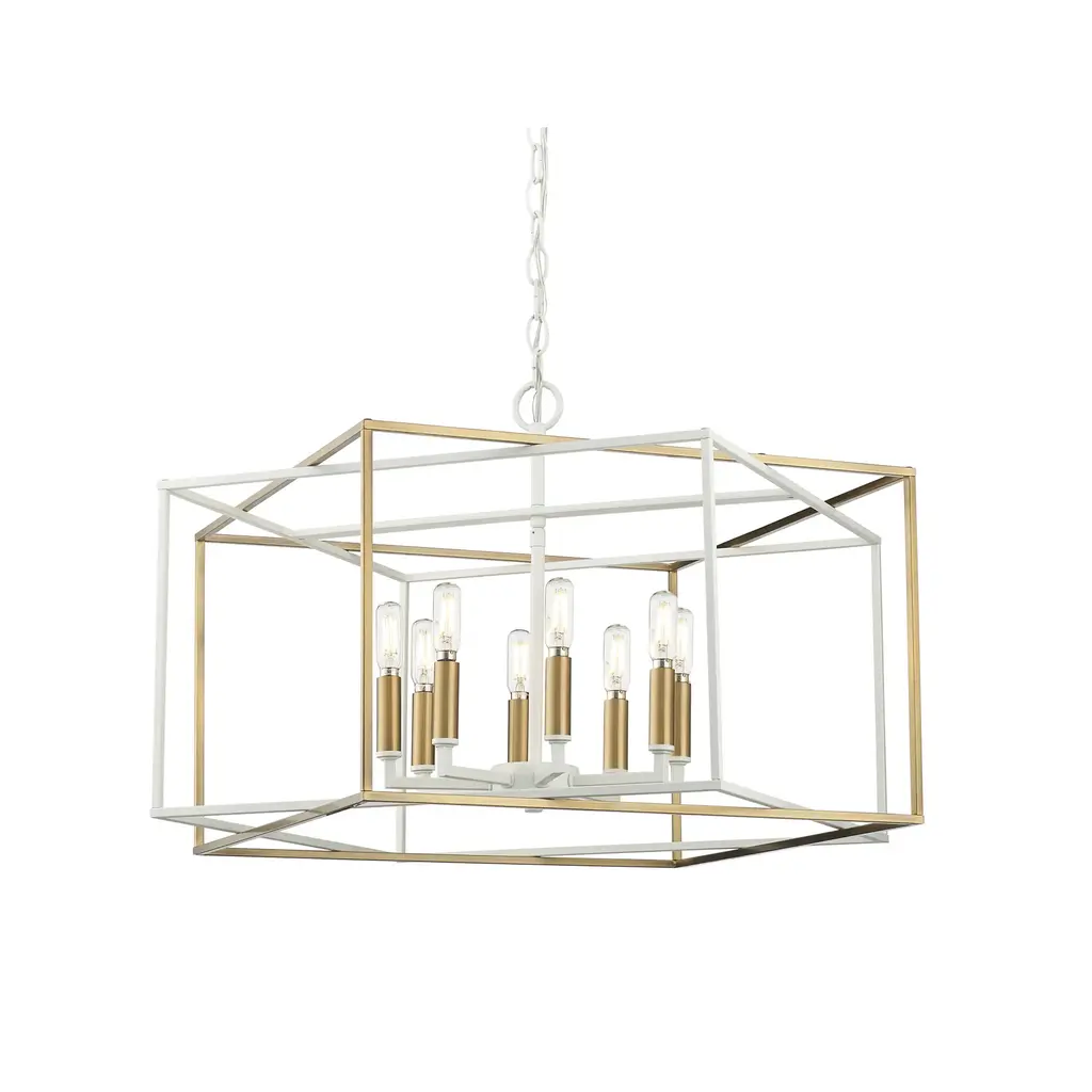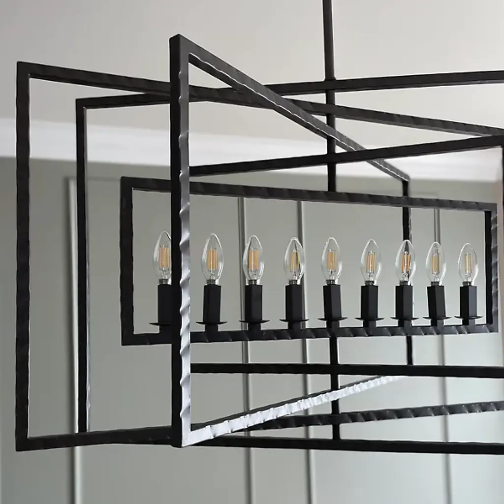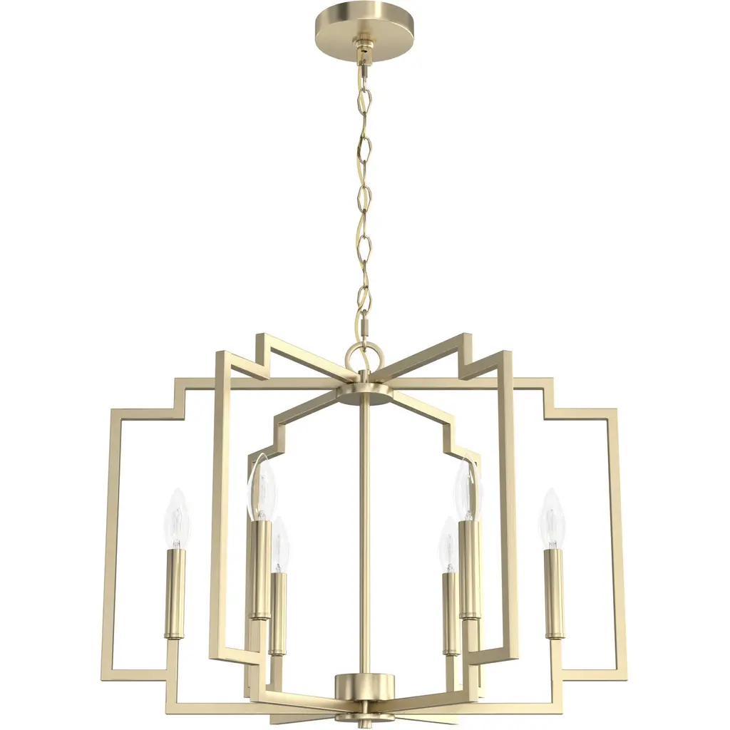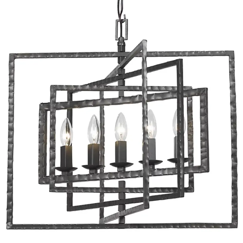 The Crystorama Capri Chandelier is an open and airy lighting fixture made of concentric rectangular rings. This piece also doubles as an interactive sculpture, the rings are adjustable to fit anyone's aesthetic needs. Due to the nature of the fixture, this piece looks different from every angle it is viewed at, always presenting a new and interesting look for the viewer.