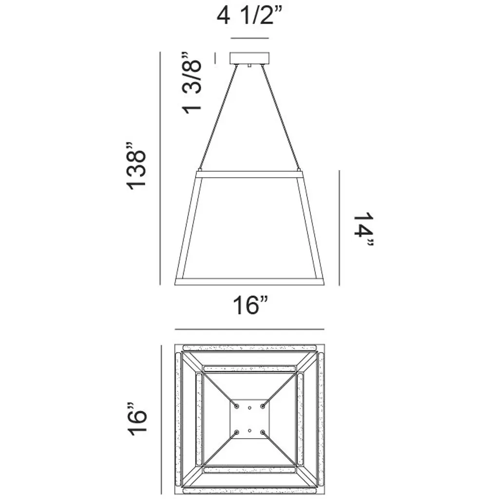 Carlington is simplicity at its best. The LED is powered by a driver in the canopy and lights the underside of the metal frame. It is suspended with silver cord and offers a direct uncomplicated vibe.