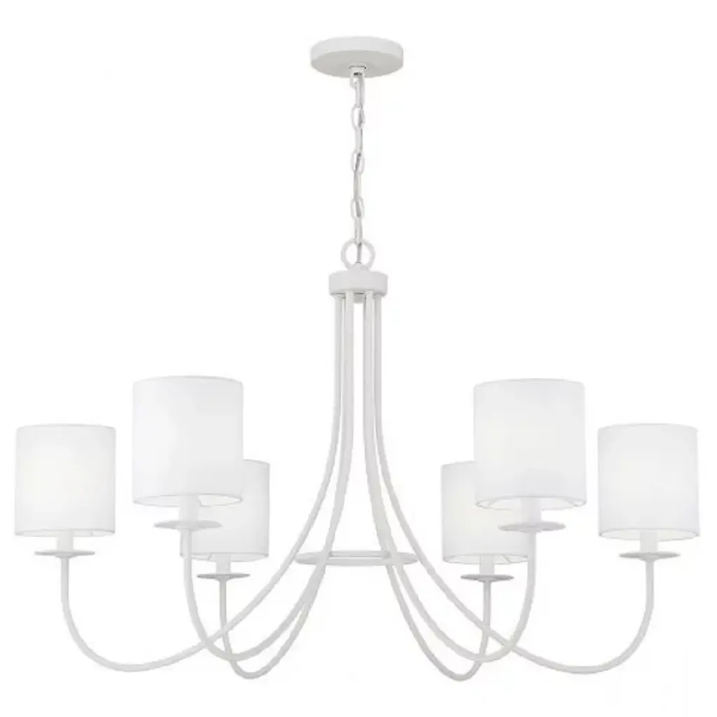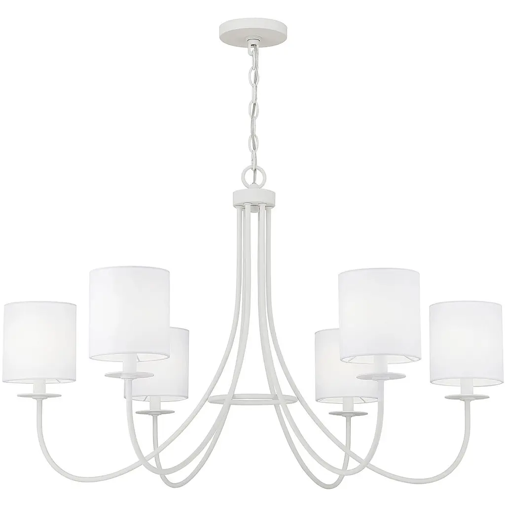 The Carly Chandelier from Alder & Ore presents a sleek, airy interpretation of classic chandelier design. This fixture exudes a refined simplicity that enhances any interior, featuring slender arms, each elegantly supporting a white fabric shade. Its minimalist aesthetic allows for a bright and open feel, making it an ideal choice for dining rooms, living areas, or entryways. With its graceful lines and soft illumination, this chandelier adds a touch of understated elegance to your home decor.