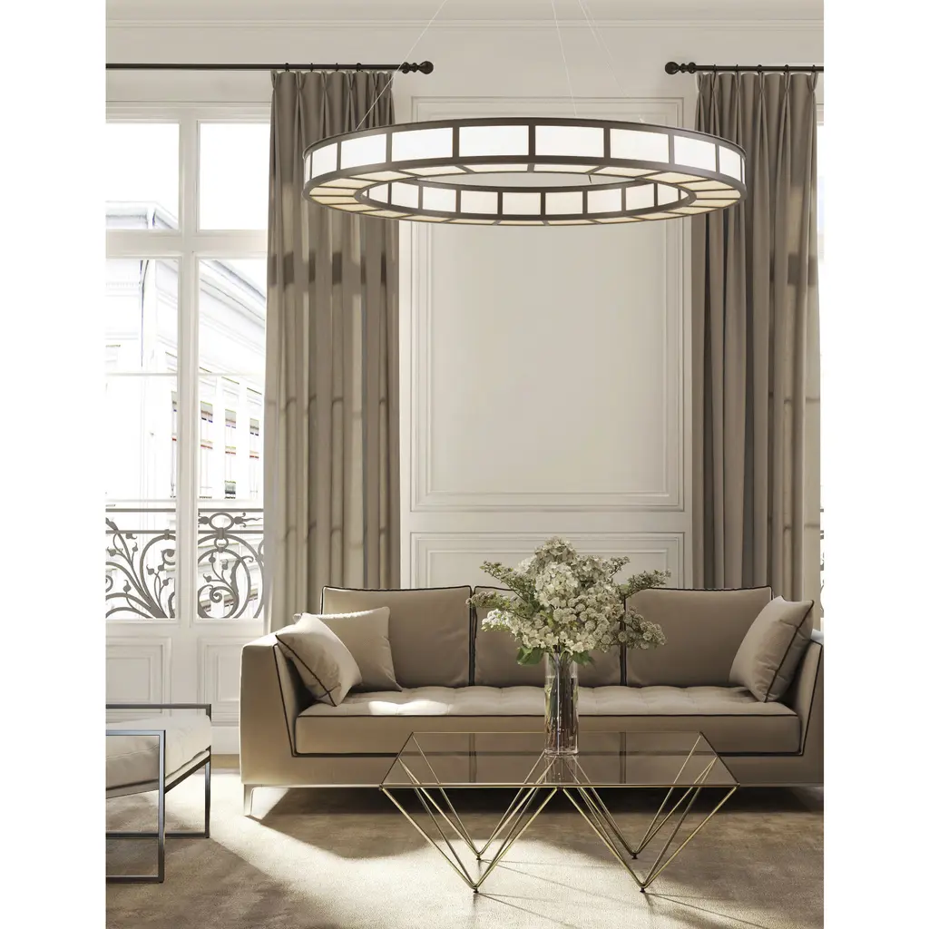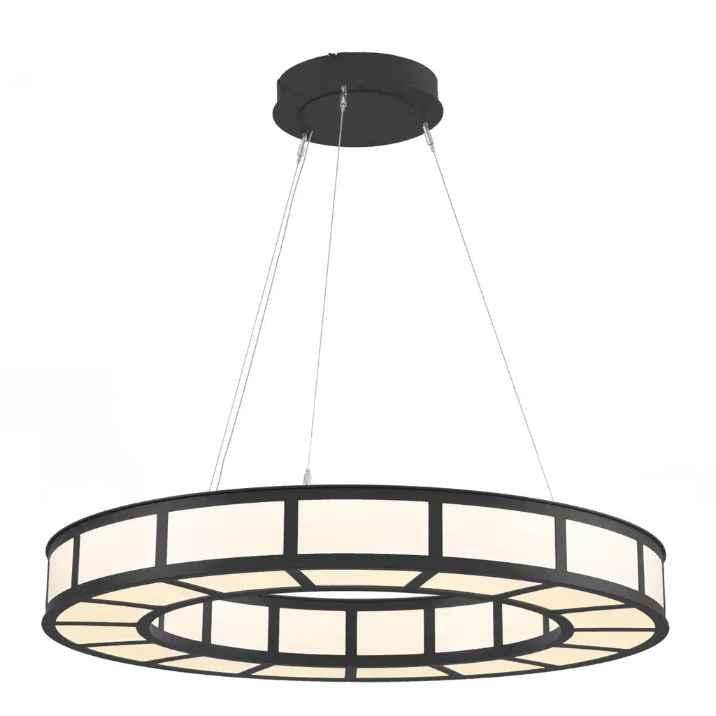 Metro Chandelier 36"-Graphite-White Glass Lens-Stainless Steel Cable-LED