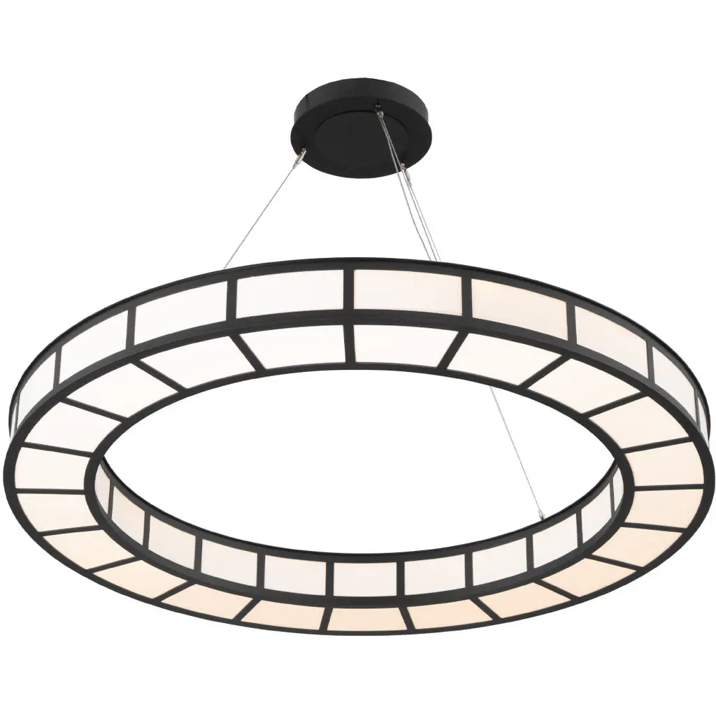 Metro Chandelier 48"-Flat Bronze-White Glass Lens-Stainless Steel Cable-LED