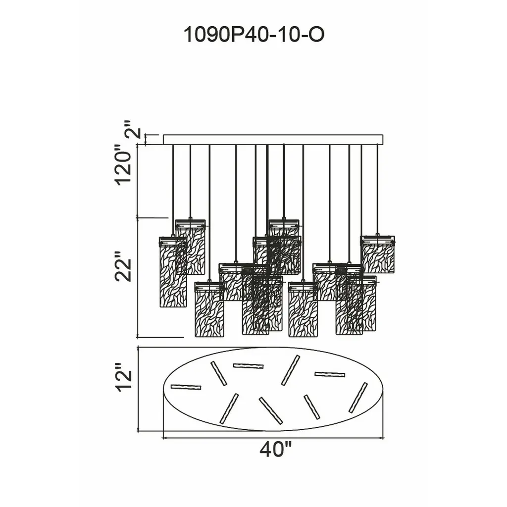 This breathtaking Carolina 40'' Modern LED Gold Leaf Chandelier is a beautiful piece from our Carolina Collection. Designed to elevate the atmosphere of larger interiors, this fixture features an elegant oval canopy in gold leaf finish with ten suspended quadrilateral glass panels. Each panel is equipped with integrated LED lighting and supported by adjustable cords for a clean and customized look. With its refined industrial tone and sculptural presence, this chandelier is a perfect centerpiece for dining rooms, living rooms, or spacious foyers seeking a modern upgrade. Finish: Gold Leaf Light Count: Integrated LED (10 panels) Light Source: LED, No Bulb Required Adjustable Hanging Height: Yes Material: Metal and Glass Style: Modern / Contemporary