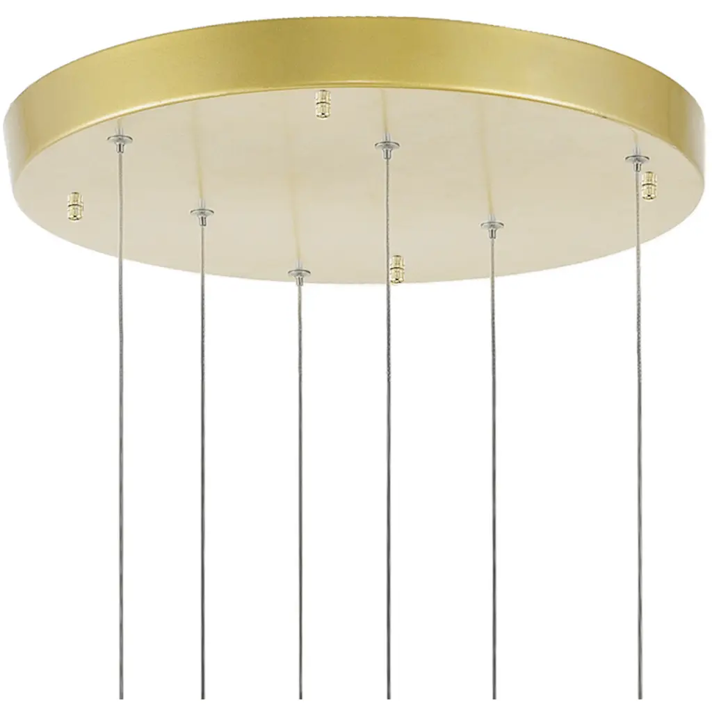 This breathtaking Carolina 16'' Modern LED Gold Leaf Chandelier is a beautiful piece from our Carolina Collection. Crafted to bring luxury and elegance into your space, this chandelier features a gold leaf canopy supporting six textured clear glass panels in various quadrilateral forms. Each panel is equipped with integrated LED lighting and framed by gold leaf-finished metal holders. The down-style design and radiant glow make this fixture a modern, high-end focal pointperfect for dining rooms, bedrooms, or foyers in need of refined charm. Finish: Gold Leaf Light Count: Integrated LED (6 panels) Light Source: LED, No Bulb Required Adjustable Hanging Height: Yes Material: Metal and Glass Style: Modern / Contemporary