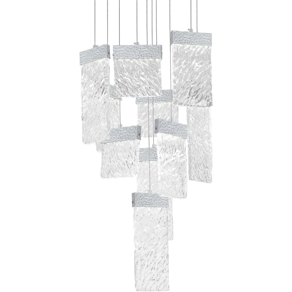 This breathtaking Carolina 20'' Modern LED Pewter Chandelier is a beautiful piece from our Carolina Collection. Combining elegance and practicality, this chandelier features ten quadrilateral glass panels with integrated LED lighting. Each panel is held by finely textured pewter-finished metalwork that adds charm and sophistication without overpowering your space. Its neutral pewter tone suits a wide variety of design themes, making this fixture an ideal choice for living rooms, dining rooms, or bedrooms seeking subtle refinement and a warm ambient glow. Finish: Pewter Light Count: Integrated LED (10 panels) Light Source: LED, No Bulb Required Adjustable Hanging Height: Yes Material: Metal and Glass Style: Modern / Contemporary