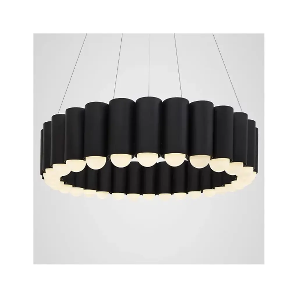 The Carousel Chandelier by Lee Broom is a bold and handsome composition inspired by traditional British merry-go-rounds. This conceptual reinterpretation of a fairground staple features an arrangement of Steel cylindrical tubes set against one another to form a halo, each housing a glass dome to diffuse a lovely ring of downlight. Every element of this contemporary chandelier has a glamorous touch, helping complete a confident and unique single tier silhouette with a lightweight and warm presence.