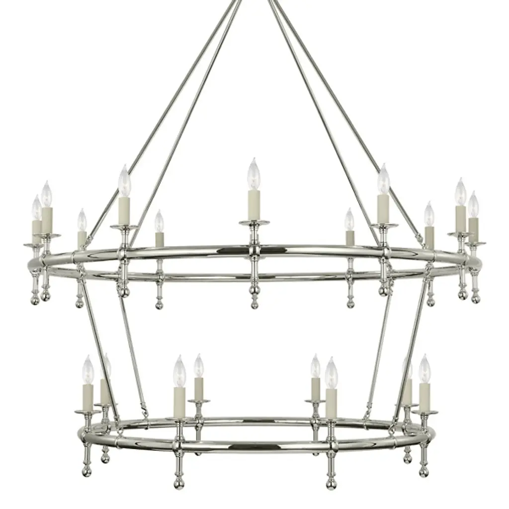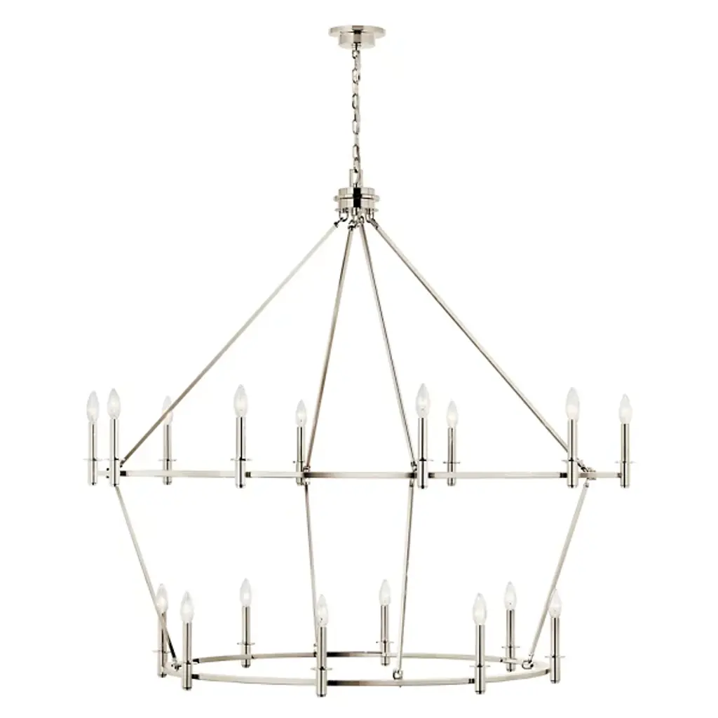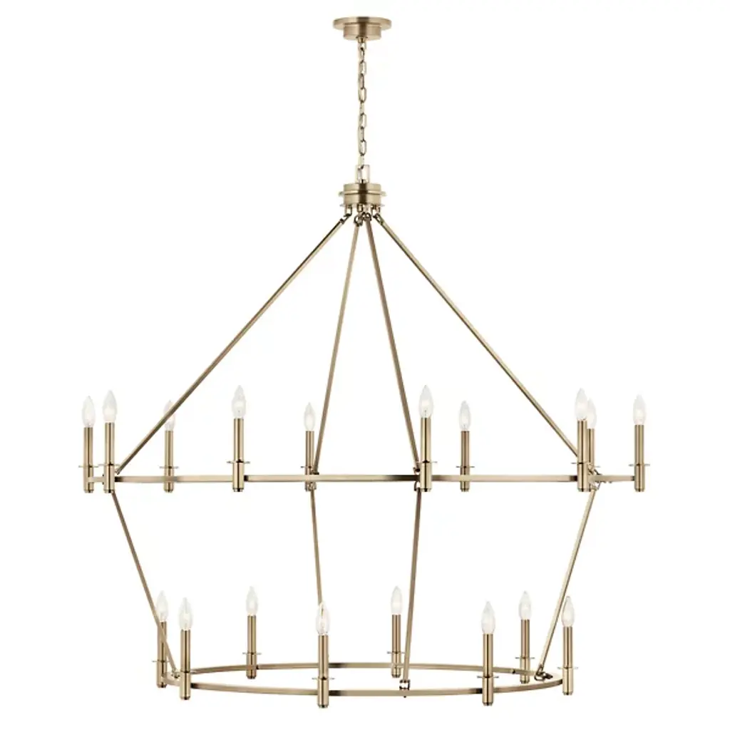 Experience the exquisite charm of the Carrick Two Tier Chandelier by Kichler, infusing a sense of airiness into traditional design. Inspired by historic ring forms, this chandelier boasts a wide, flat ring with candlesticks that appear to float gracefully off its edge, presenting a unique perspective from any vantage point. Delicate bobeche detailing on each candlestick enhances its timeless elegance, culminating in a captivating luminary that gracefully illuminates any space with classic sophistication.
