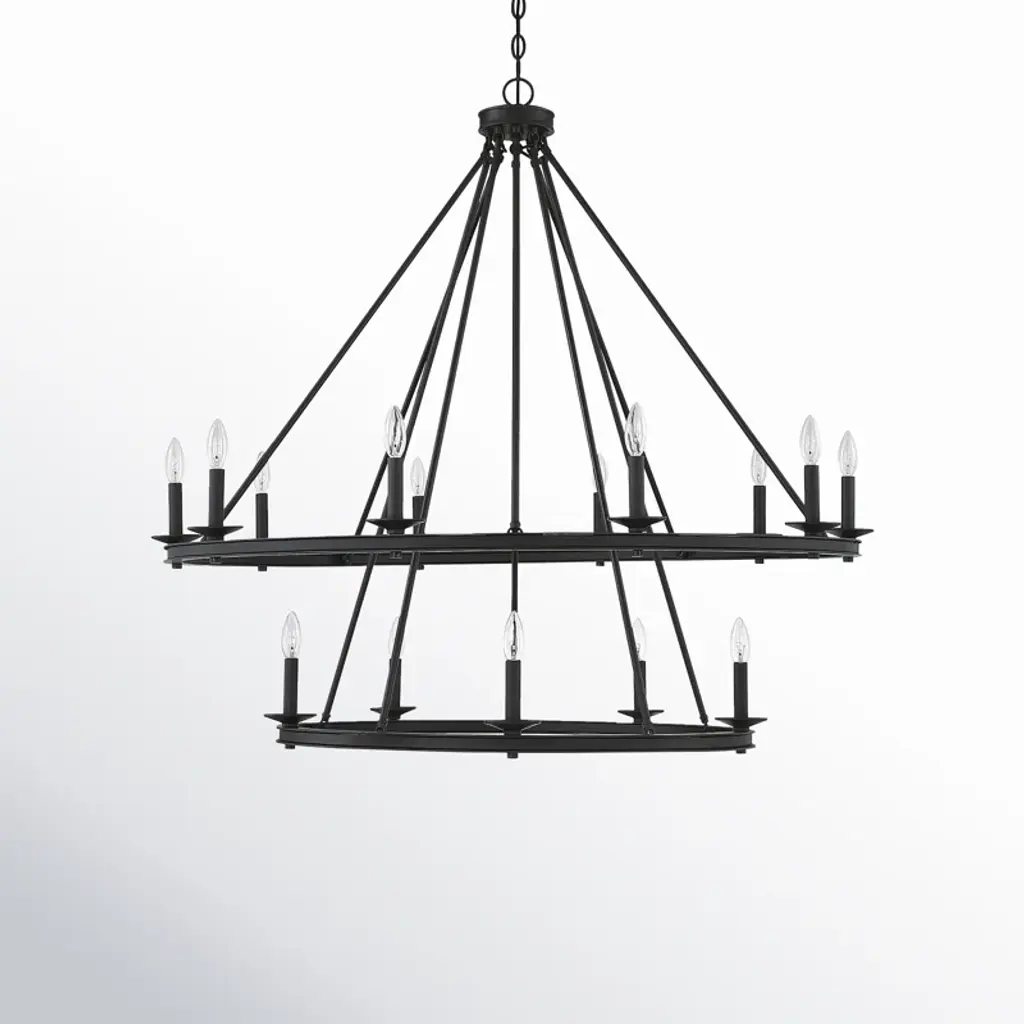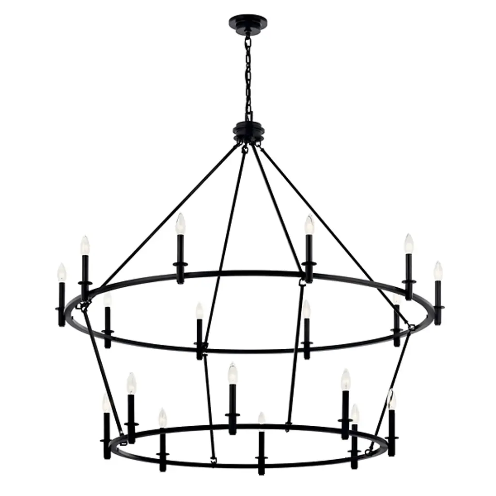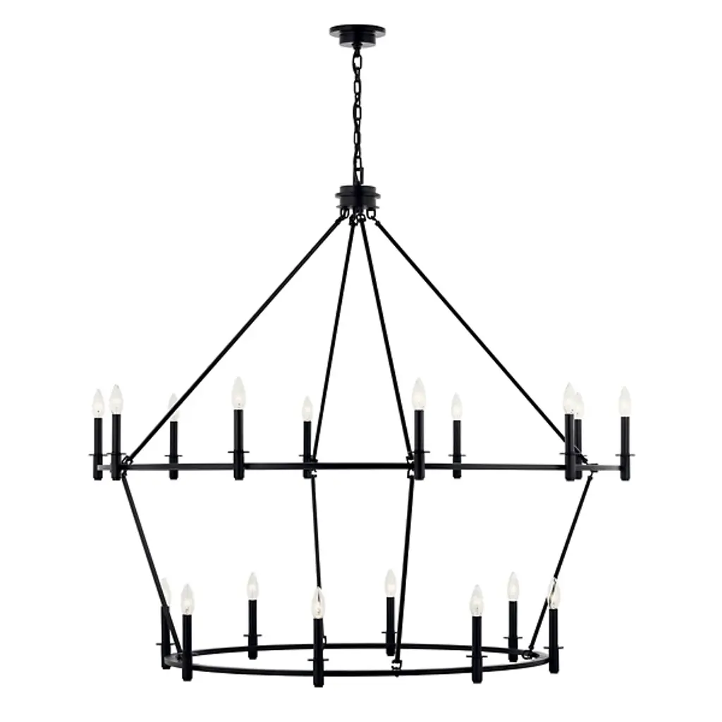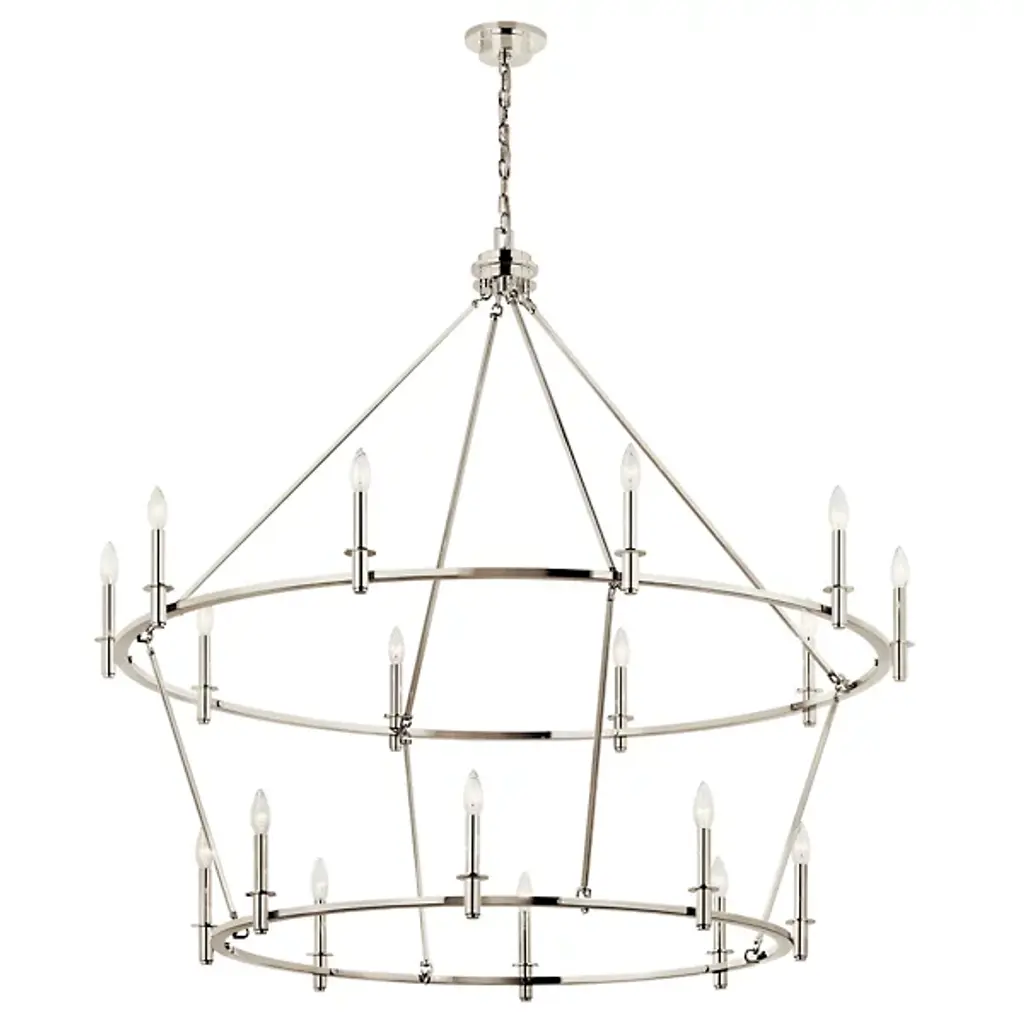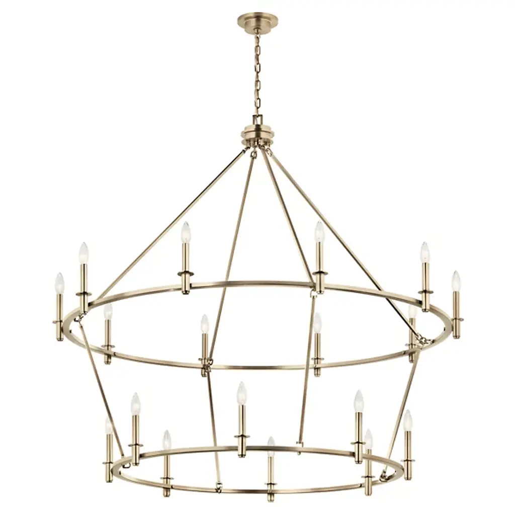 Experience the exquisite charm of the Carrick Two Tier Chandelier by Kichler, infusing a sense of airiness into traditional design. Inspired by historic ring forms, this chandelier boasts a wide, flat ring with candlesticks that appear to float gracefully off its edge, presenting a unique perspective from any vantage point. Delicate bobeche detailing on each candlestick enhances its timeless elegance, culminating in a captivating luminary that gracefully illuminates any space with classic sophistication.